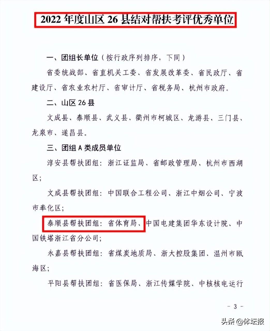 日前,省鄉村振興局公佈2022年度山區26縣結對幫扶考評優單位,省體育局榜上有名。