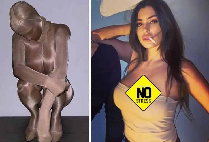事實上,之前侃爺帶Bianca Censori看秀的時候,造型就大跌眼鏡,讓人摸不着頭腦,當時,侃爺夫婦臉都不露一點,把自己包裹嚴嚴實實的,特別妻子的裝扮,前衛大膽,用絲襪套頭,全身上下都遮住了,實在太另類,光看圖就有窒息感了。