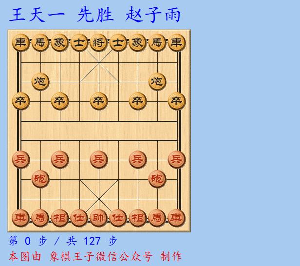 奪得兩連勝的王天一勢不可擋,在第三輪中,面對前杭州戰將趙子雨,王天一執紅棋最多時,下出了多四兵的優勢。