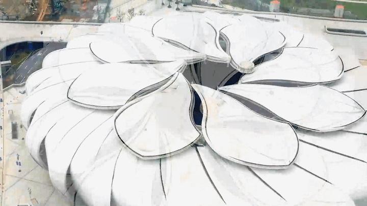 雖然與“大蓮花”的設計理念思路一脈相承,共由8片160噸花瓣組成,但匠心澆灌的“小蓮花”還頗具動態之美——它的屋蓋可以緩緩開合,如蓮花般綻放。據悉,這項場館懸挑端上的可旋轉開閉屋蓋還被中國工程院院士領銜的專家團隊評定爲世界首創,目前,決賽場地已經獲得國際網聯ITF二星認證,杭州亞運會網球比賽將在此舉行。