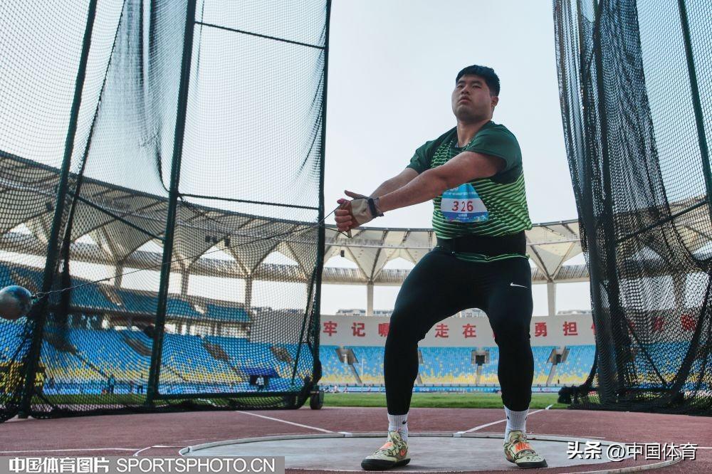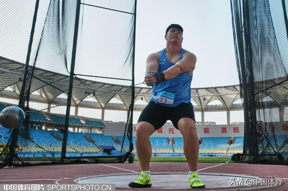 男子鏈球決賽中,江蘇鐵人隊姜河以70米70登頂,山東中泰證券隊李沛勳和江蘇鐵人隊丁元波分列二、三位,成績分別爲68米70和65米31。