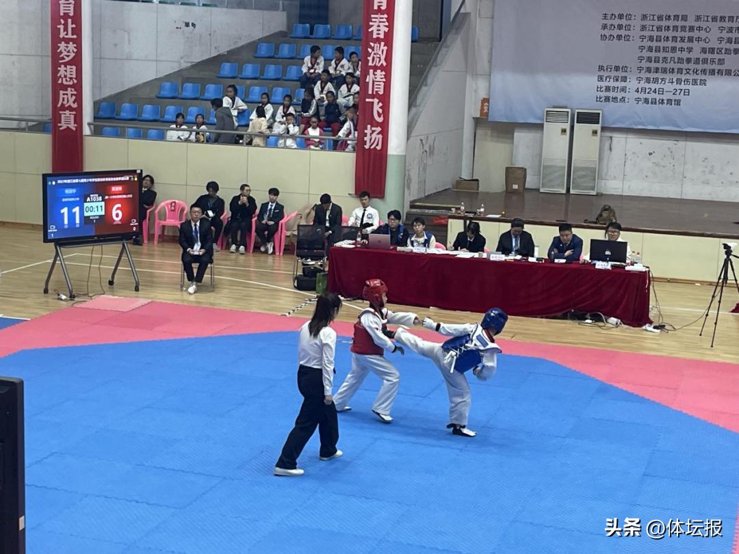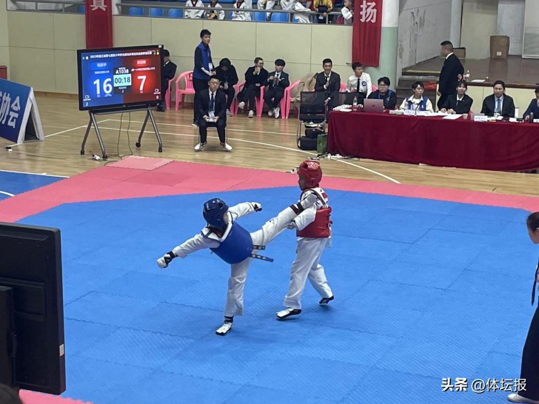據悉,2023年全國少年跆拳道錦標賽共有全國各省區市30支代表隊的340名運動員參加角逐。我市運動員方瀚挺代表浙江隊參賽,在男子45公斤級決賽階段,擊敗上海選手吳宇浩獲得金牌。