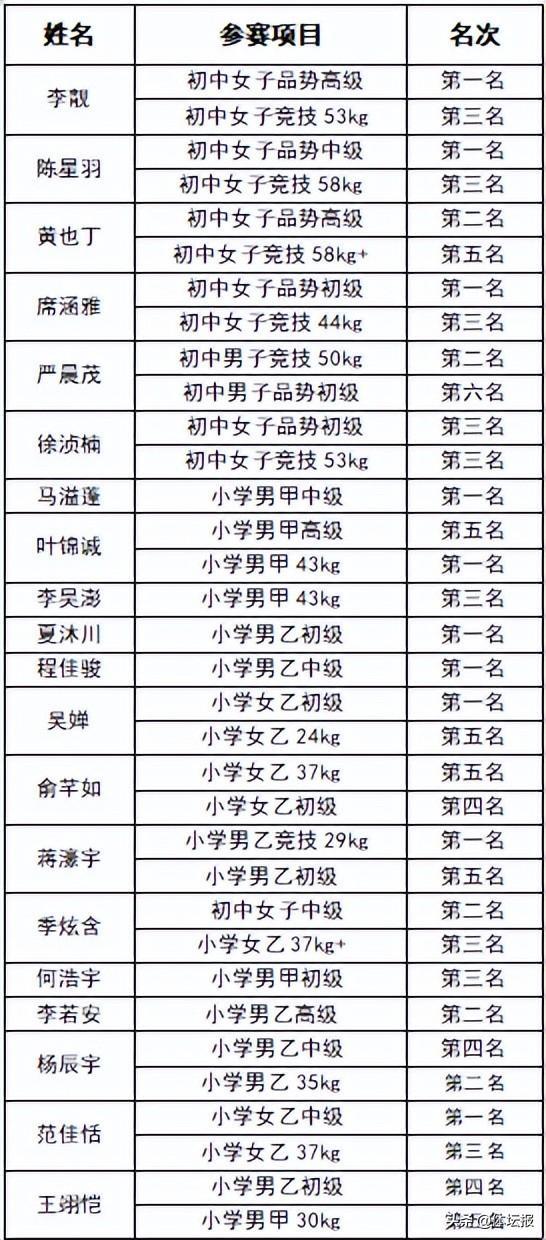 近日,建德健兒方瀚霆在2023年全國少年跆拳道錦標賽(西安站)獲得45公斤級全國冠軍。新一中、明珠小學跆拳道代表在浙江省第七屆青少年學生陽光體育運動會跆拳道比賽中分別獲得初中組團體總分第一、乙組團體總分第一。