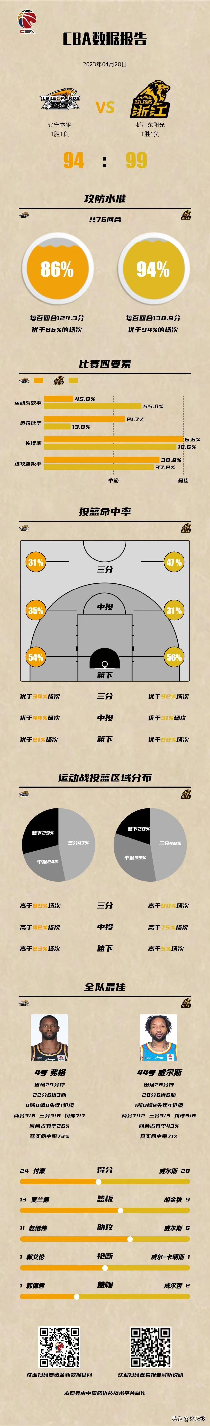 本場比賽,威爾斯拿到28分6籃板6助攻;孫銘徽全場出場44分鐘,投籃27中9,三分球15中7,罰球2中2,得到27分6籃板6助攻1搶斷。遼寧方面,付豪成爲全隊最高,拿到24分3籃板。