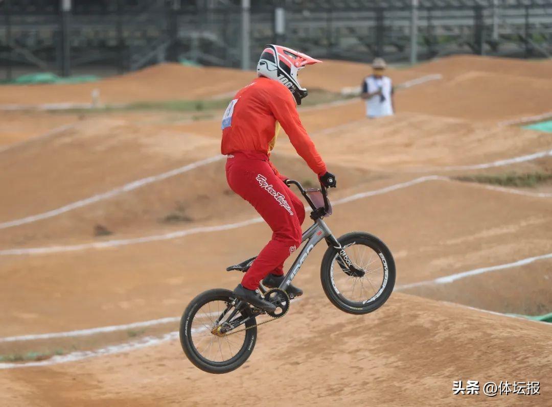 首日比賽現場,天空不作美,突然下起小雨,讓比賽不得不延遲半小時。不過,突發狀況並沒有影響選手們的比賽熱情,他們在等待區積極熱身,等待上場。半小時後,隨着太陽昇起,烏雲散去,選手們陸續從出發點把小輪車推到比賽點。只聽“啪”的一聲——他們從高臺上極速俯衝而下,雙腳用力踩踏板,飛越高低不同的坡道,期間還有不少選手在比賽中擺出拉伸和車身旋轉的高難度動作,引得現場觀衆拍手叫好。