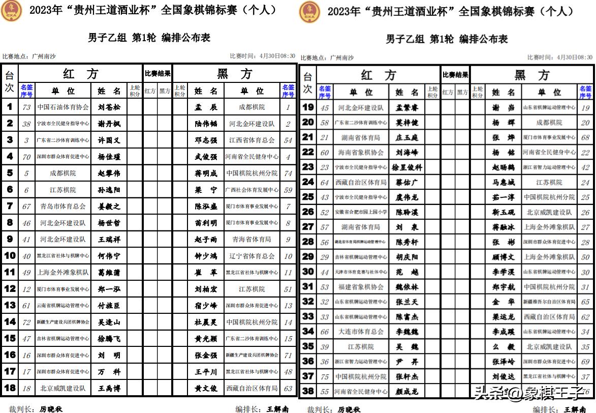 值得一提的是,按照比賽規定,男乙、女子組按等級分排序,男甲按上屆排位,這樣衛冕冠軍王廓爲1號種子,王天一爲8號種子,個人賽成爲唯一外星人非1號種子賽,王廓首當頭號選手。