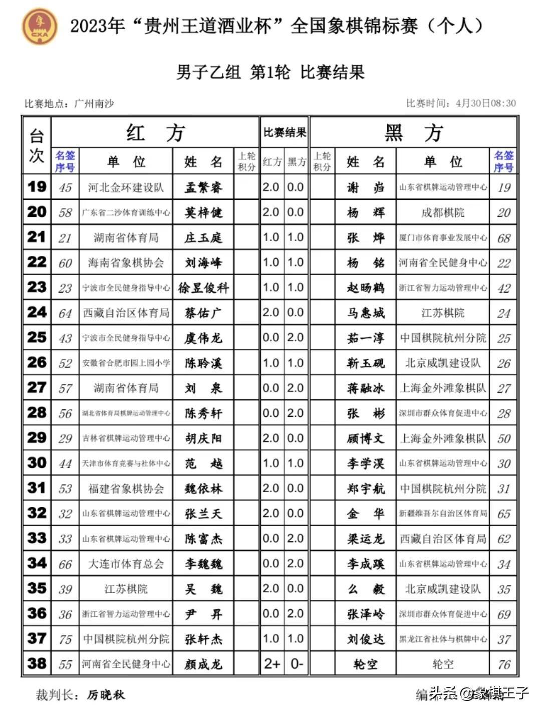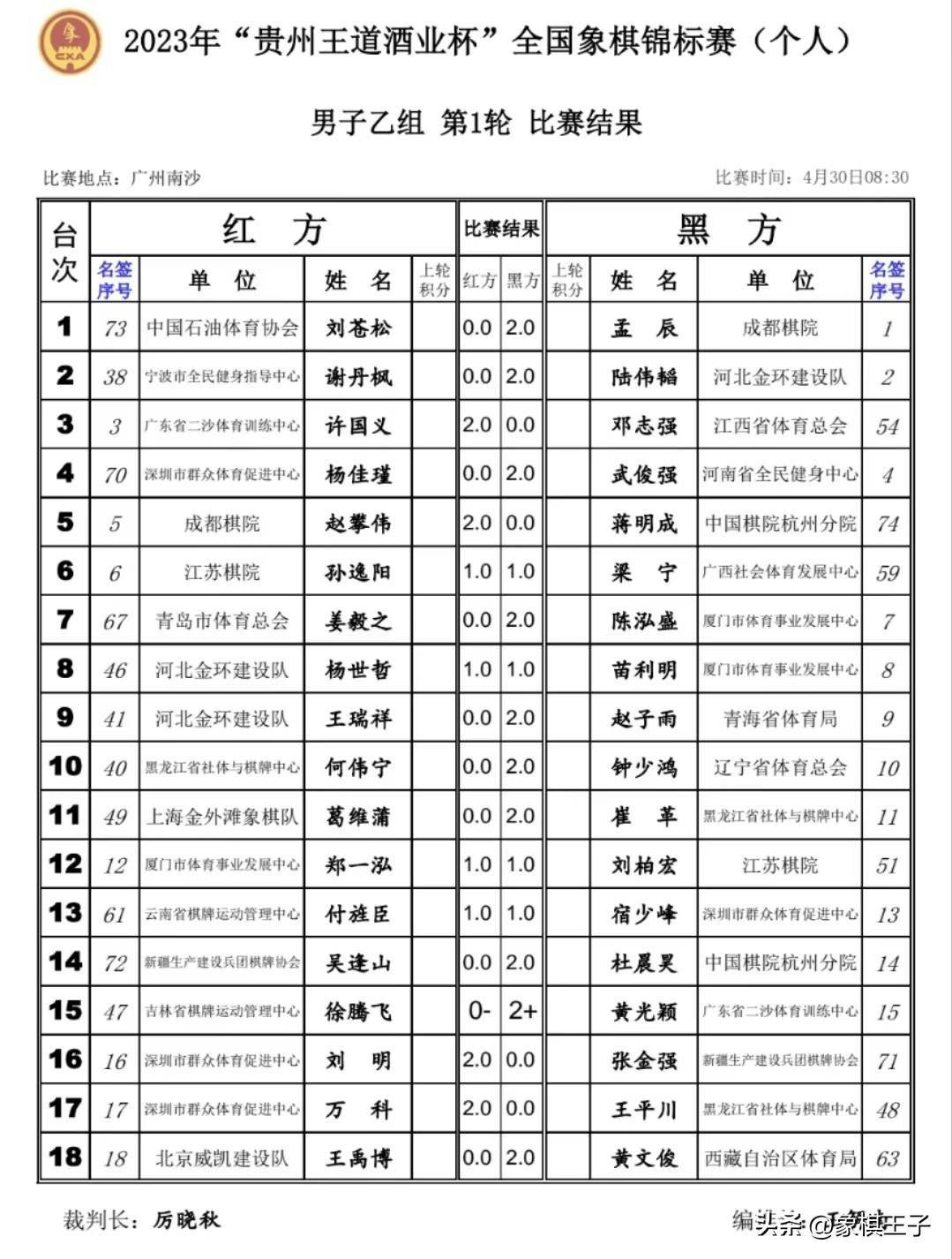 4月30日,2023年全國象棋個人賽首輪比賽在廣州南沙戰罷,孟辰、孟繁睿等強手紛紛獲勝,廣東隊取得大捷,多位棋手同時贏棋,主場聲威,黃文俊更是後手擊敗了王禹博,一顯廣東十虎的威名。象棋王子全程直播。