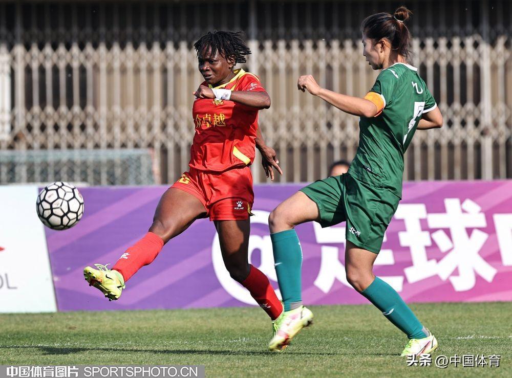中國體育訊 4月30日,2023中國太平中國足球協會女子超級聯賽第七輪的一場比賽在北京先農壇體育場舉行。主場作戰的北京隊(綠衣)0比3不敵長春大衆卓越隊(紅衣)。 (中國體育圖片 王憲民 攝)