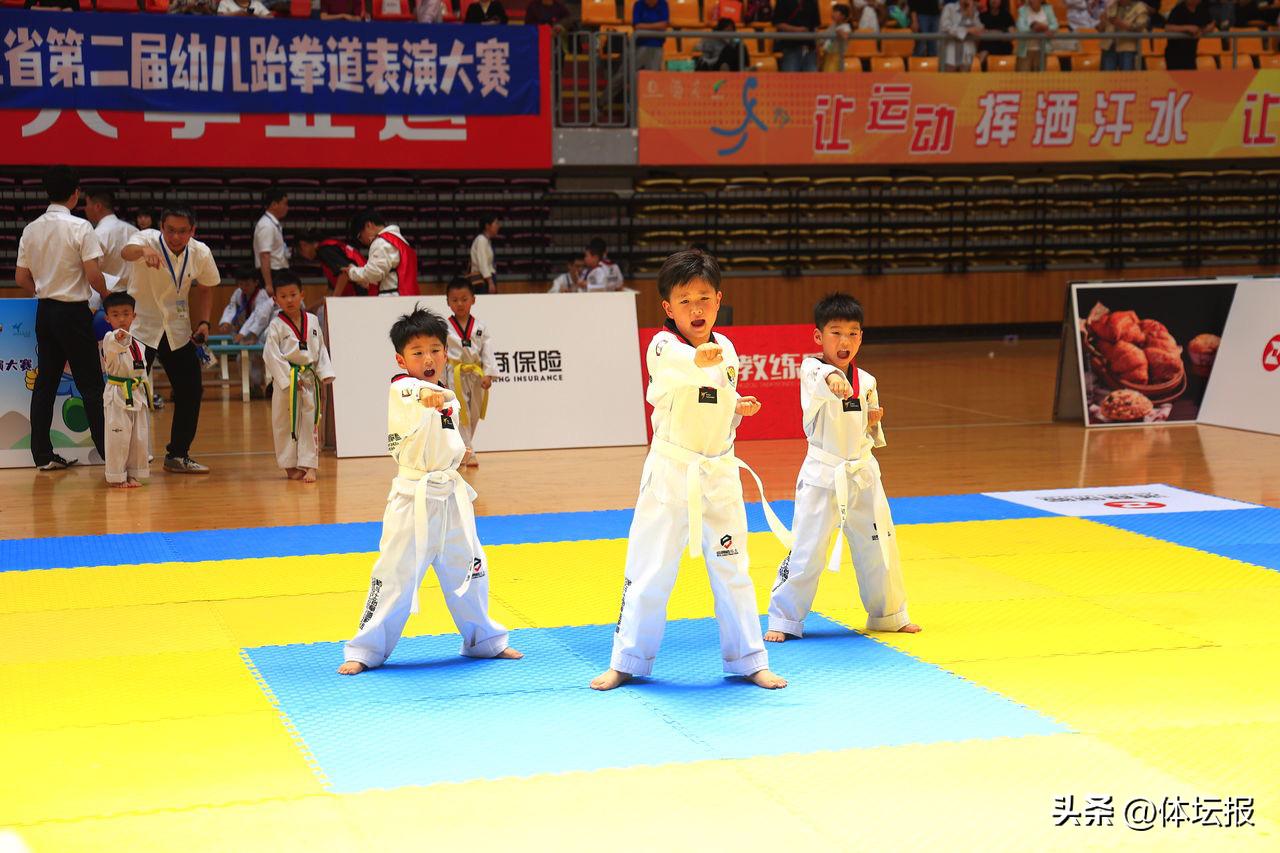 5月1日,由浙江省體育局、浙江省總工會、共青團浙江省委、浙江體育總會等部門聯合主辦的2023年浙江省幼兒體育大會暨浙江省第二屆幼兒跆拳道表演賽在湖州體育館臺隆重開賽。共有32支幼兒園隊伍參賽,參賽小運動員近400人。