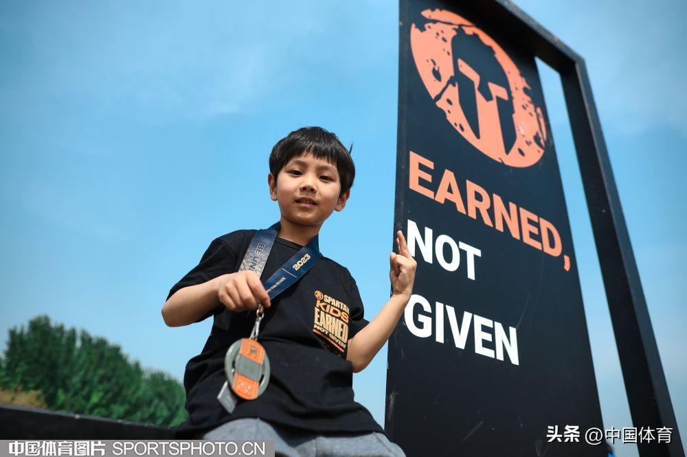 中國體育訊 5月1日,2023斯巴達勇士兒童賽繼續在北京上林馬術公園進行。近兩千五百名小勇士披荊斬棘,奔跑撒歡,在斯巴達賽場上盡情澆灌屬於自己的成長之花。胸前掛着自己一步一個腳印贏來的獎牌,小勇士們無比驕傲與自傲。(中國體育圖片 鹿麟 攝)