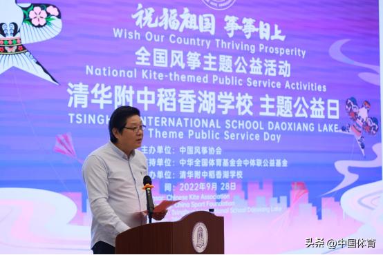 清華附中稻香湖學校校長辛穎在主題公益活動現場發表了講話。她表示,作爲中華傳統優秀文化的重要組成部分,隨着風箏的製作技藝被列入國家級非遺“傳統手工技藝”的類別,出於“薪火相傳”的考慮,讓風箏運動走進校園是必要之舉。辛穎希望,能夠藉助此次與中國風箏協會通力合作的機會,帶給清香學子與衆不同的風箏文化與風箏運動實踐體驗,同時依託於“放飛風箏”的美好寓意,祝福祖國欣欣向榮,祝福每一位“箏箏少年”夢想飛揚。