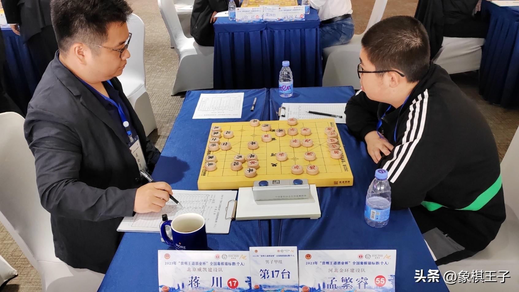 孟繁睿執先五九炮過河車對屏風馬平炮兌車的兇狠陣勢,馬炮殘局獲得勝利,進入32強,蔣川遺憾離場。