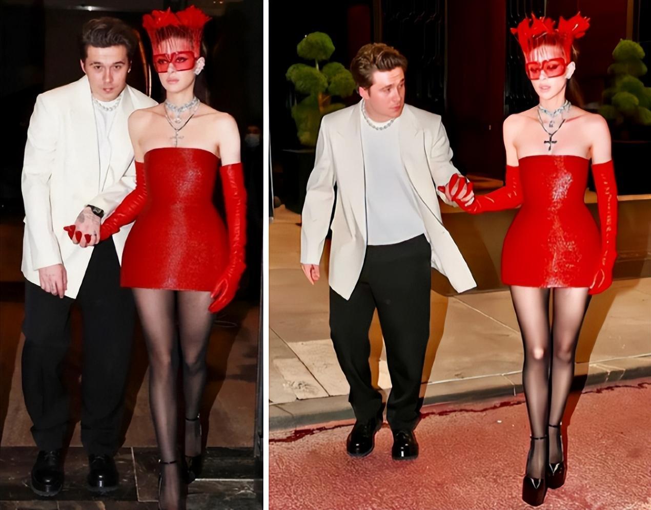 當然,即便布魯克林再怎麼打扮,焦點依然還是妻子妮可拉,只見她身穿Valentino 2023早秋系列黑裙,厚底鞋也出自Valentino,一個星二代一個富二代,這對小夫妻每天的“工作”就是秀恩愛,太讓人羨慕了。