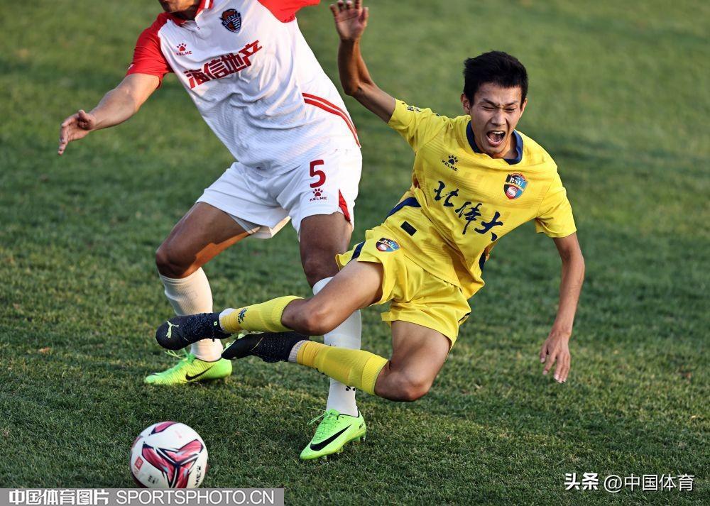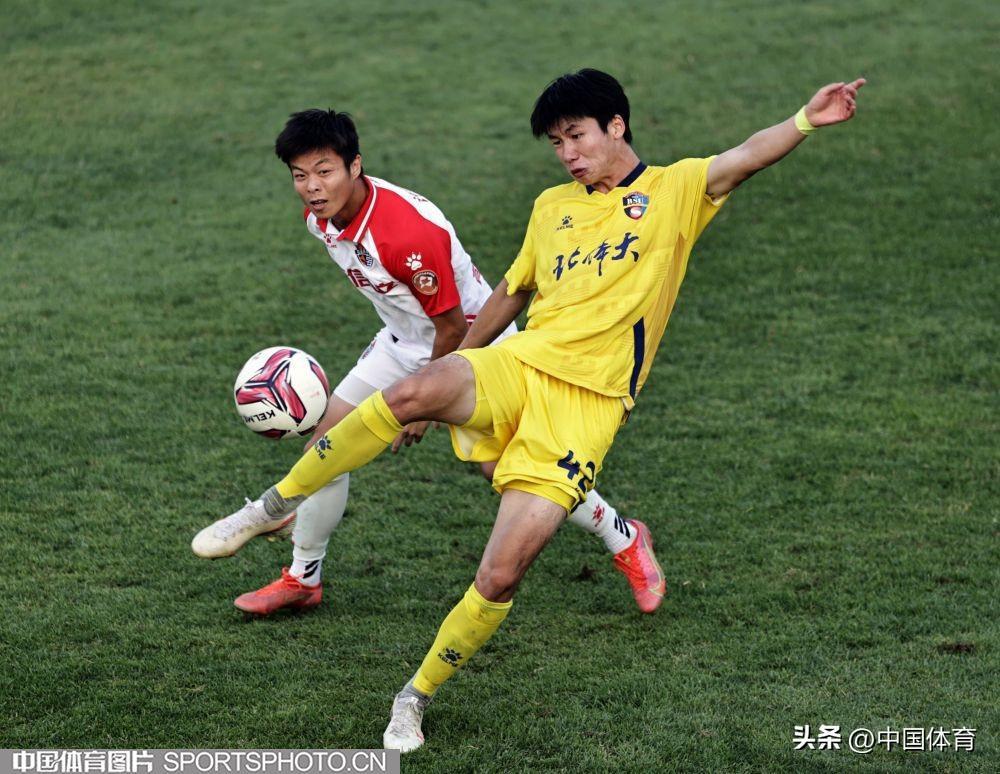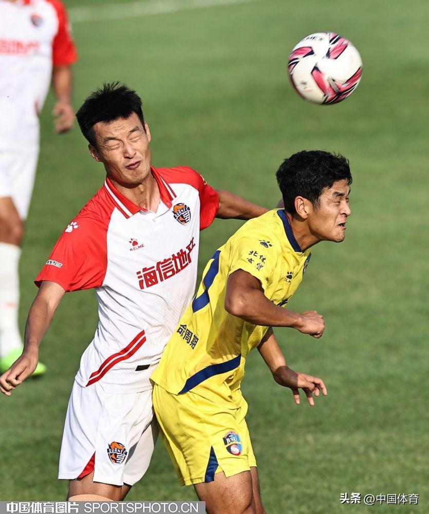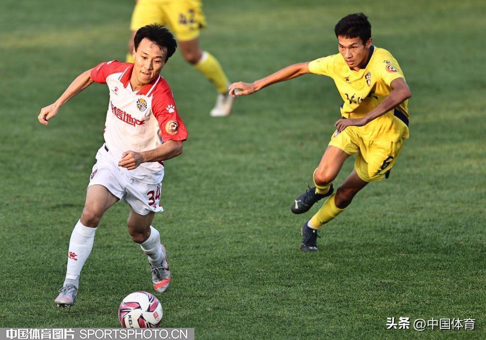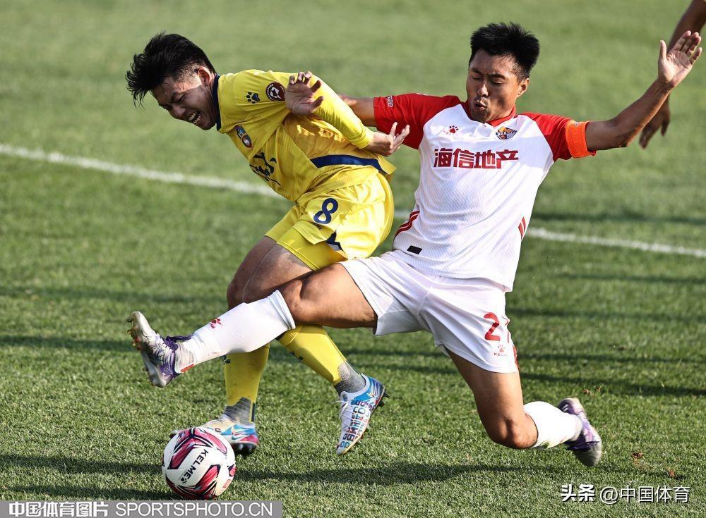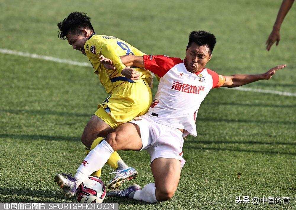 中國體育訊 9月28日,在2022年中國足球協會甲級聯賽第二十四輪(唐山賽區)的一場比賽中,青島海牛隊(白衣)以3比0戰勝北京北體大隊(黃衣)。(中國體育圖片 王憲民 攝)