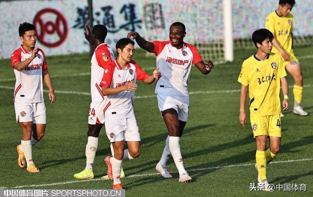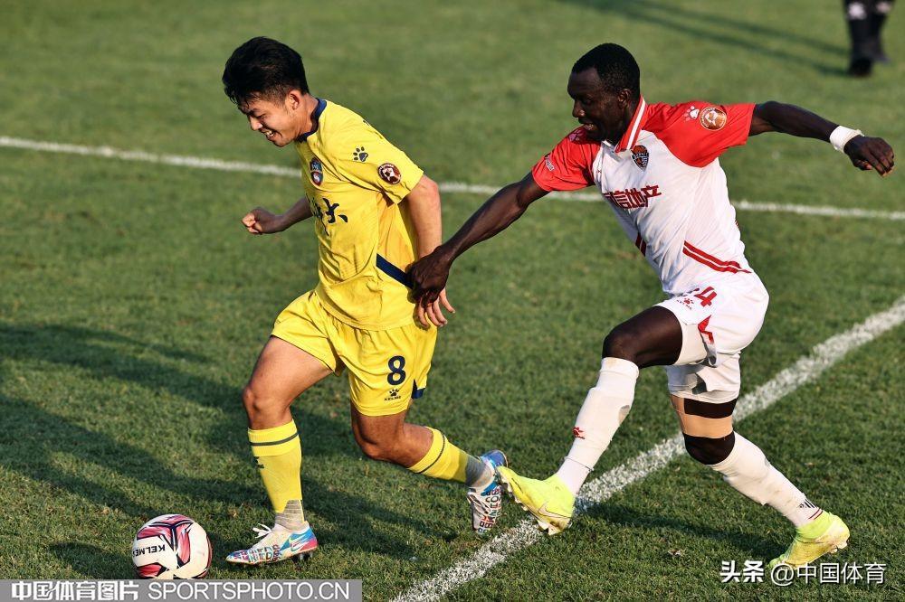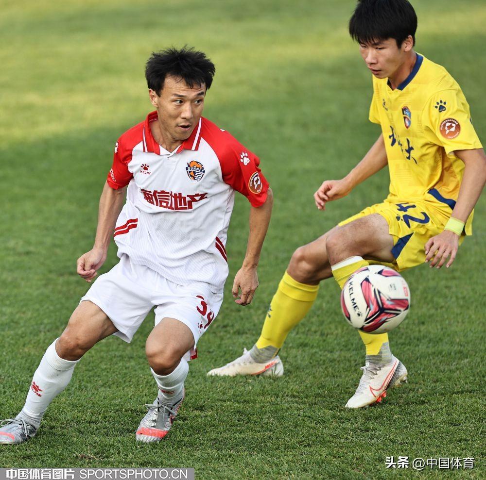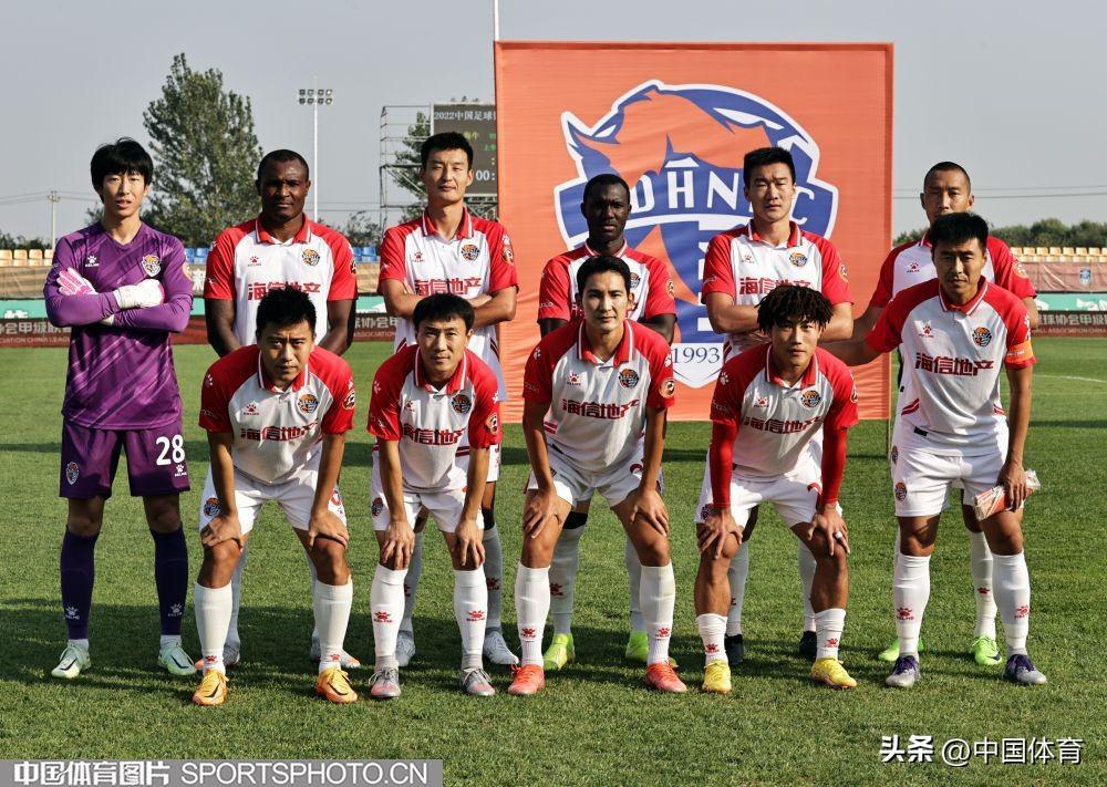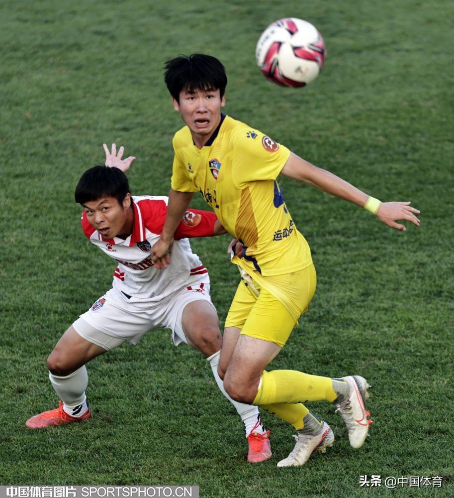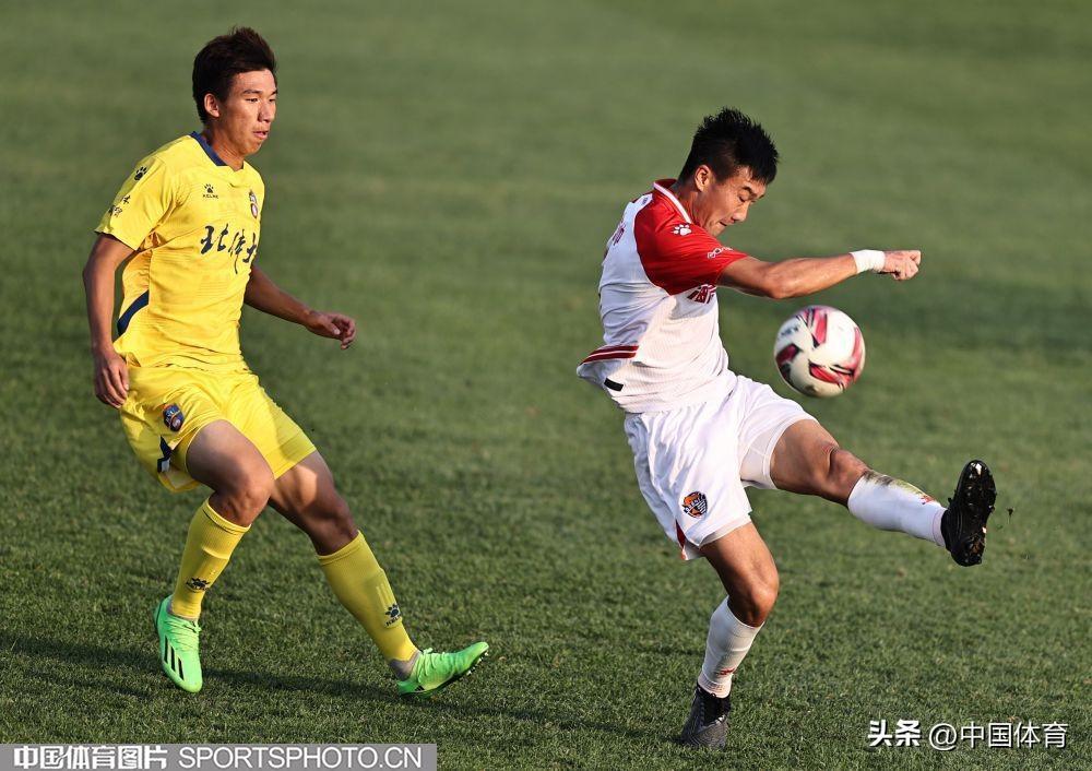中國體育訊 9月28日,在2022年中國足球協會甲級聯賽第二十四輪(唐山賽區)的一場比賽中,青島海牛隊(白衣)以3比0戰勝北京北體大隊(黃衣)。(中國體育圖片 王憲民 攝)