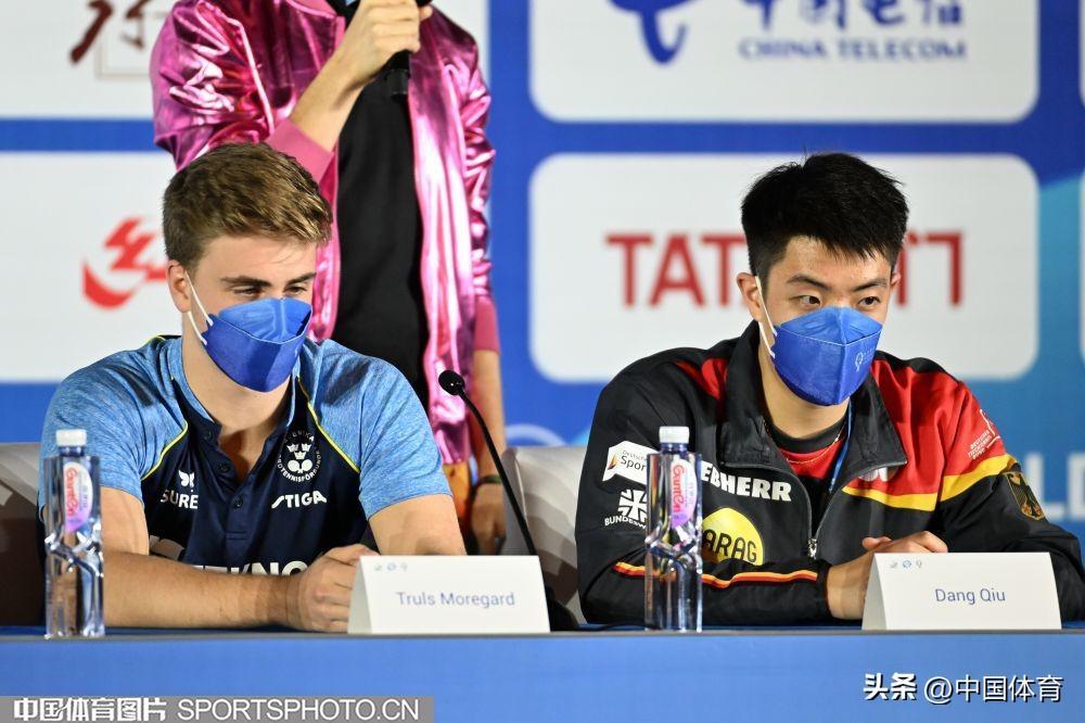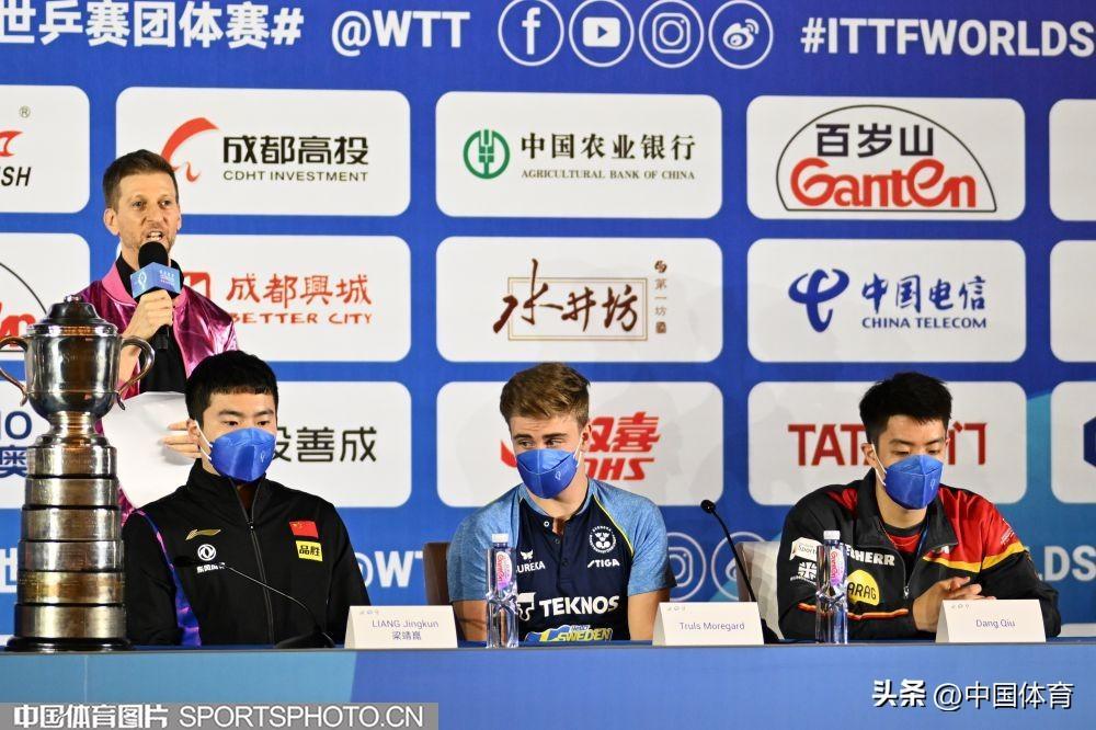 圖爲(左起)中國隊梁靖崑、瑞典隊圖爾斯·莫雷高德和德國隊邱黨