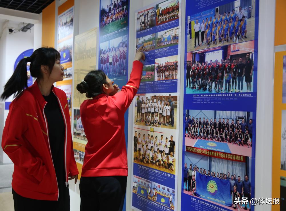 一張張排球比賽的歷史照片記錄着實驗排球的光輝歷程,一份份獎狀獎盃承載着歷屆運動員們辛勤的汗水。引得現場參觀的人紛紛拍照,找照片中尋找自己的身影。