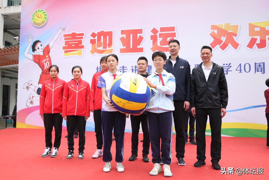 市教育局負責人致歡迎辭,原國家男排副攻、現浙江女排教練員、市實驗小學校友李杭致辭,武警天津指揮學院原副政委、少將邵建華爲活動題詞“團結協作 頑強拼搏”。副市長李俊爲教練團隊、市實驗小學新老隊員頒發了紀念球、紀念品。前中國男排主力隊員、浙江省女排主教練王賀兵,原杭州市教育局黨委委員、一級調研員張志龍參加活動。