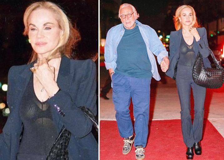 不僅如此,妮可拉的超模老媽克勞迪也是罕見秀性感,要知道,她已經68歲了,卻還是挺拔身材,氣場十足,與丈夫老佩爾茨牽手亮相,她穿了一件黑色透視內搭,若隱若現地露出內衣,看得出來她的腰身還是那麼纖細,皮膚白皙,精神矍鑠,壓根想不到這居然是一個快奔七的老人。