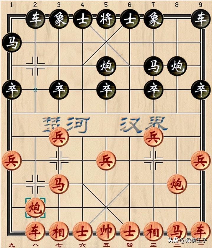 紅左側拉出車馬,黑右路亮車後,紅左炮過河封車,黑棋回馬踩炮,是下,紅棋多爲炮八進一或炮八退一。