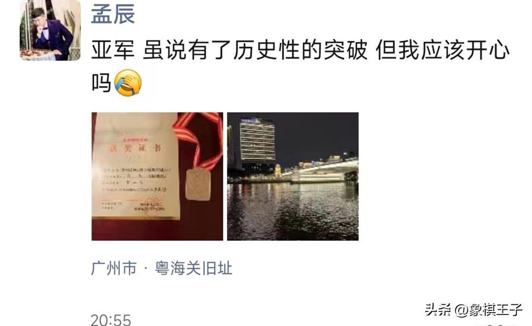 特大殺手自己表露了心聲,亞軍,雖說有了歷史性的突破,但我應該開心嗎(捂臉),配圖,證書+一條河。