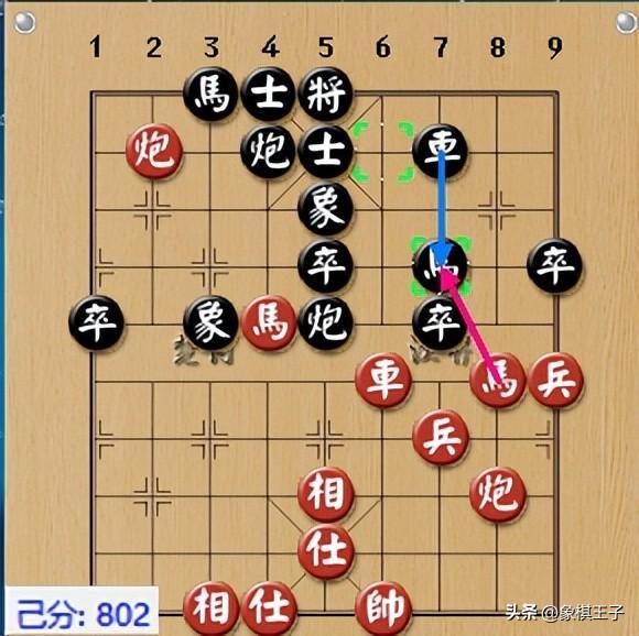 黑只能送士,紅車提起黑士即砍,黑方陣型瞬亂,紅方車炮幾個來回,左炮兼入底,揮炮力滅黑棋4路殘士。