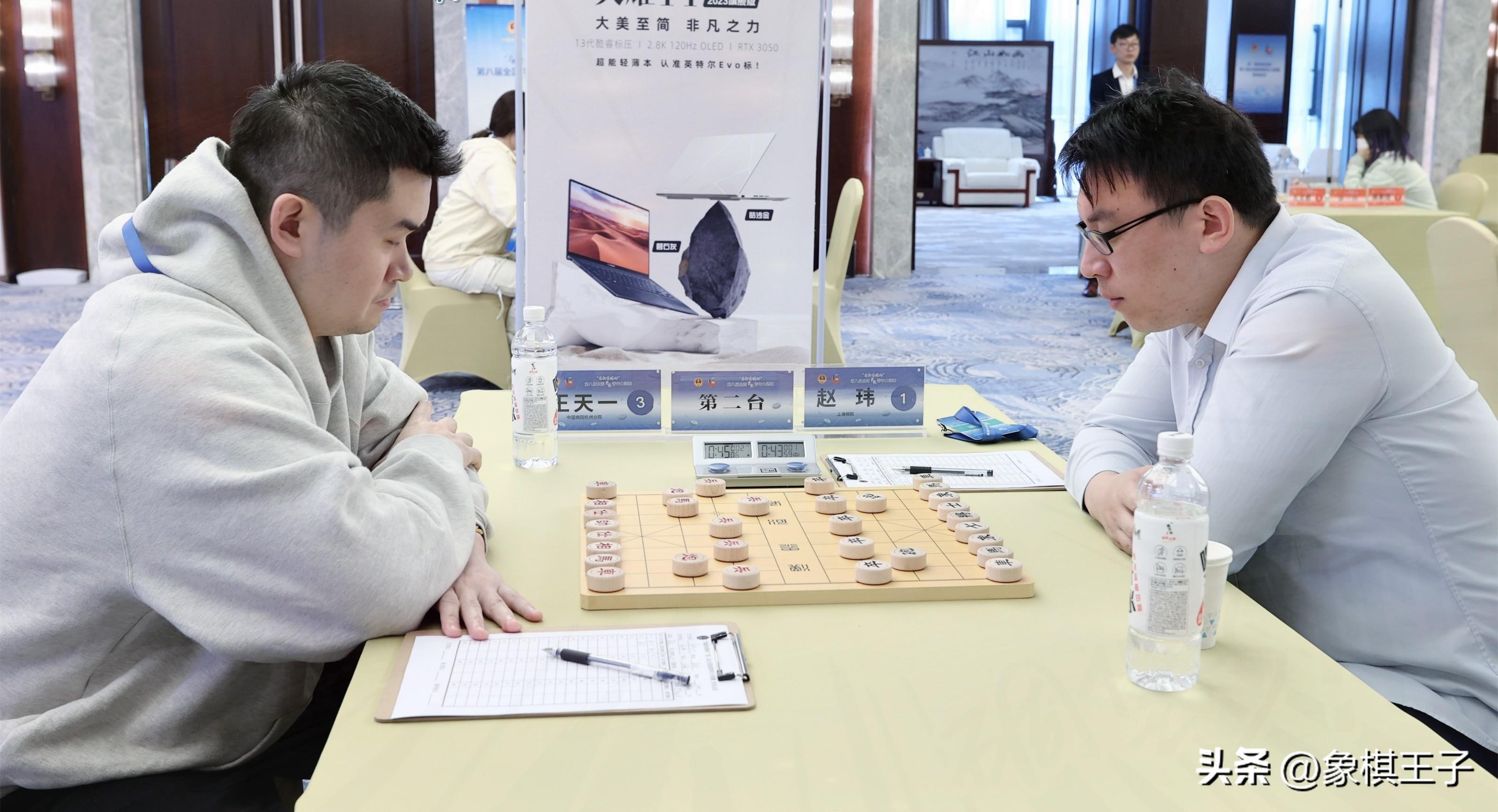 等級分第一,奪冠大熱門王天一執先與實力派強手趙瑋之戰,兩人以仙人指路對卒底炮開局。