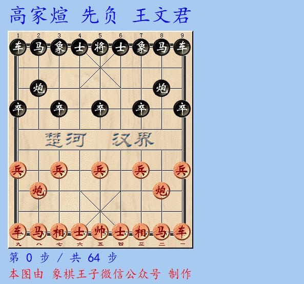 是輪王文君後手對高家煊,兩人五八炮進三兵對屏風馬進3卒陣,王文君後手很快反先。
