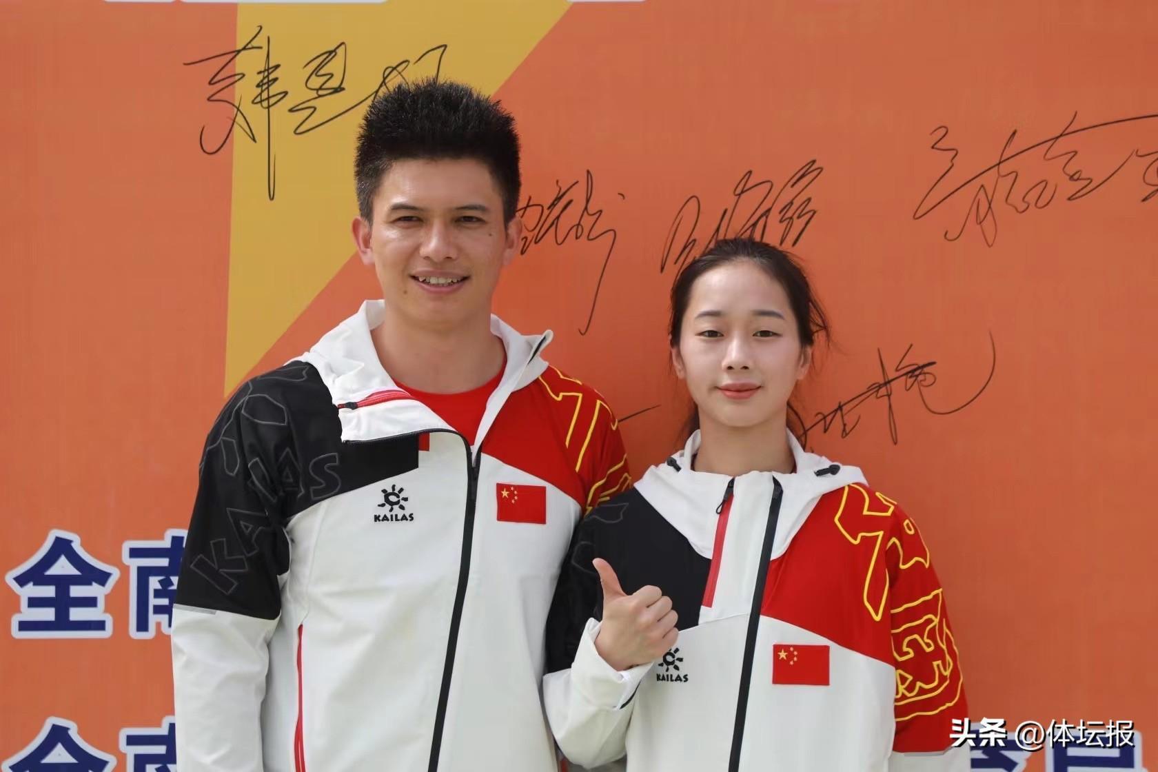 周婭菲和省隊教練鍾齊鑫合影