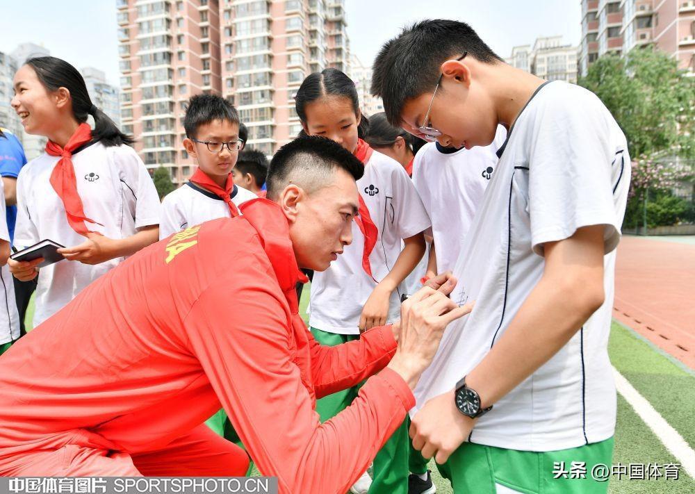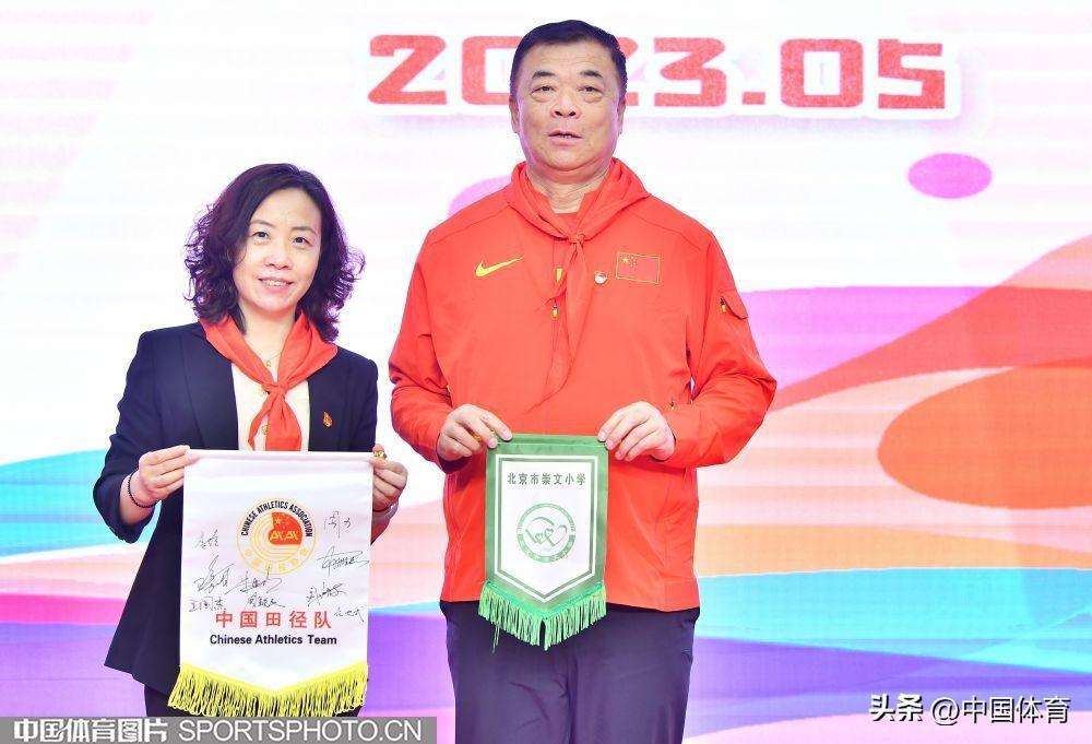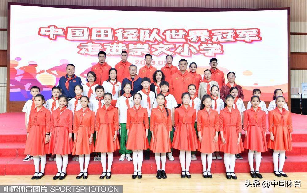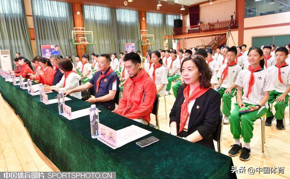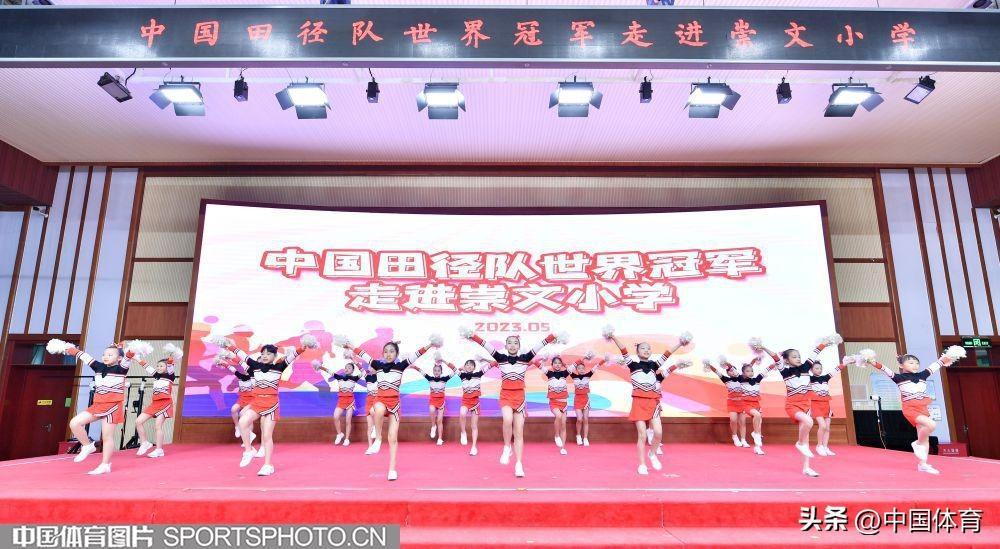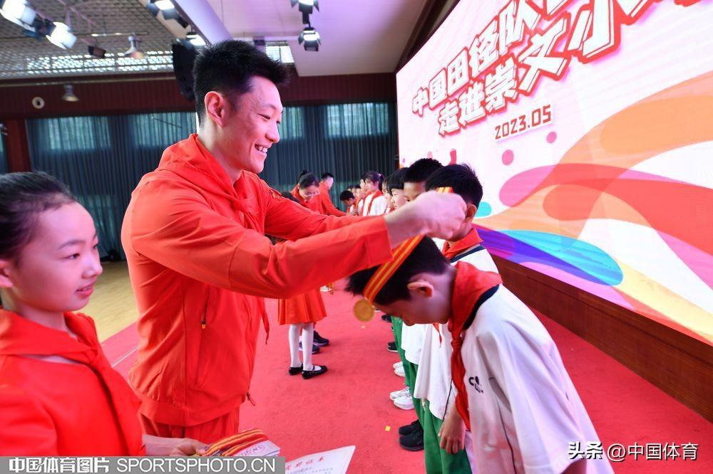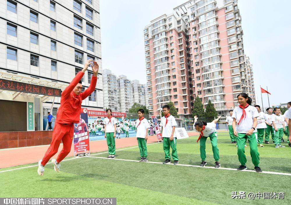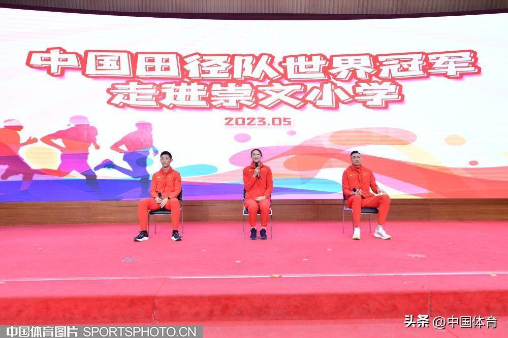 中國體育訊 5月11日,中國田徑隊世界冠軍進校園活動在北京市崇文小學體育館舉行。中國田徑隊撐竿跳高世界冠軍李玲、跳遠世界冠軍王嘉男、東京奧運會三級跳遠亞軍朱亞明與崇文小學學生分享訓練比賽心得並指導學生田徑訓練。(中國體育圖片 白宇 攝)