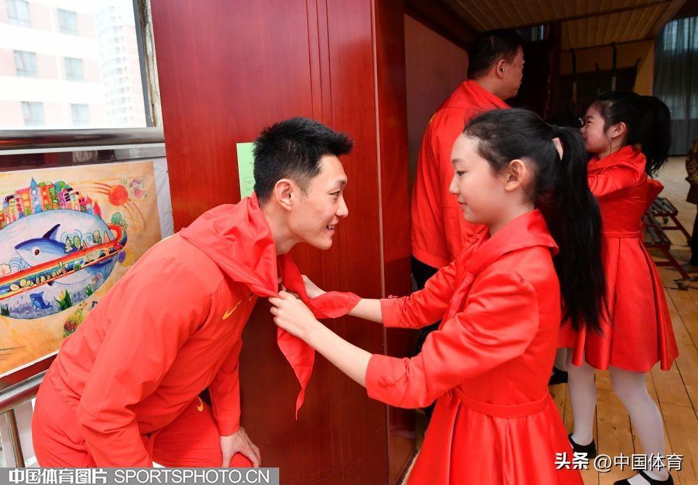 學生爲王嘉男戴紅領巾