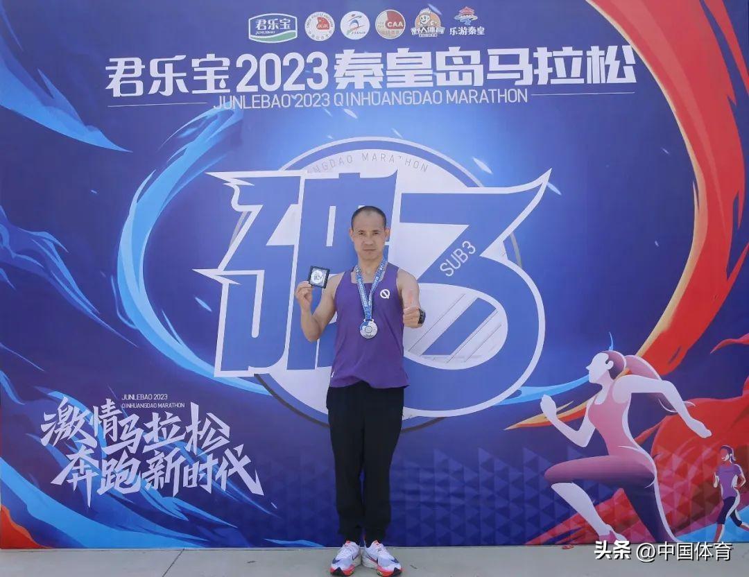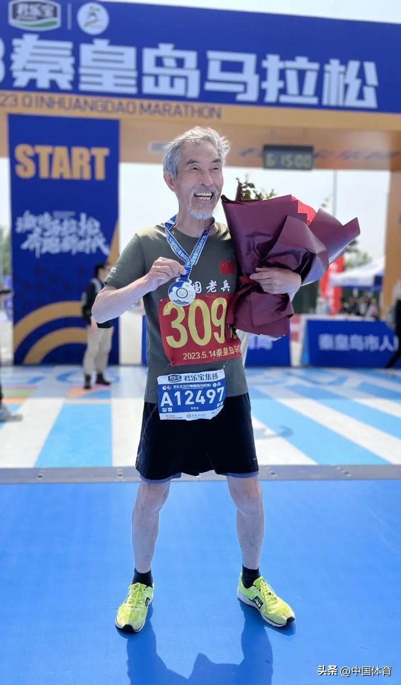 最後一名完賽選手衝過終點線,秦皇島市體育局局長肖鳳利爲最後一名完賽選手親自戴上獎牌並獻上鮮花。