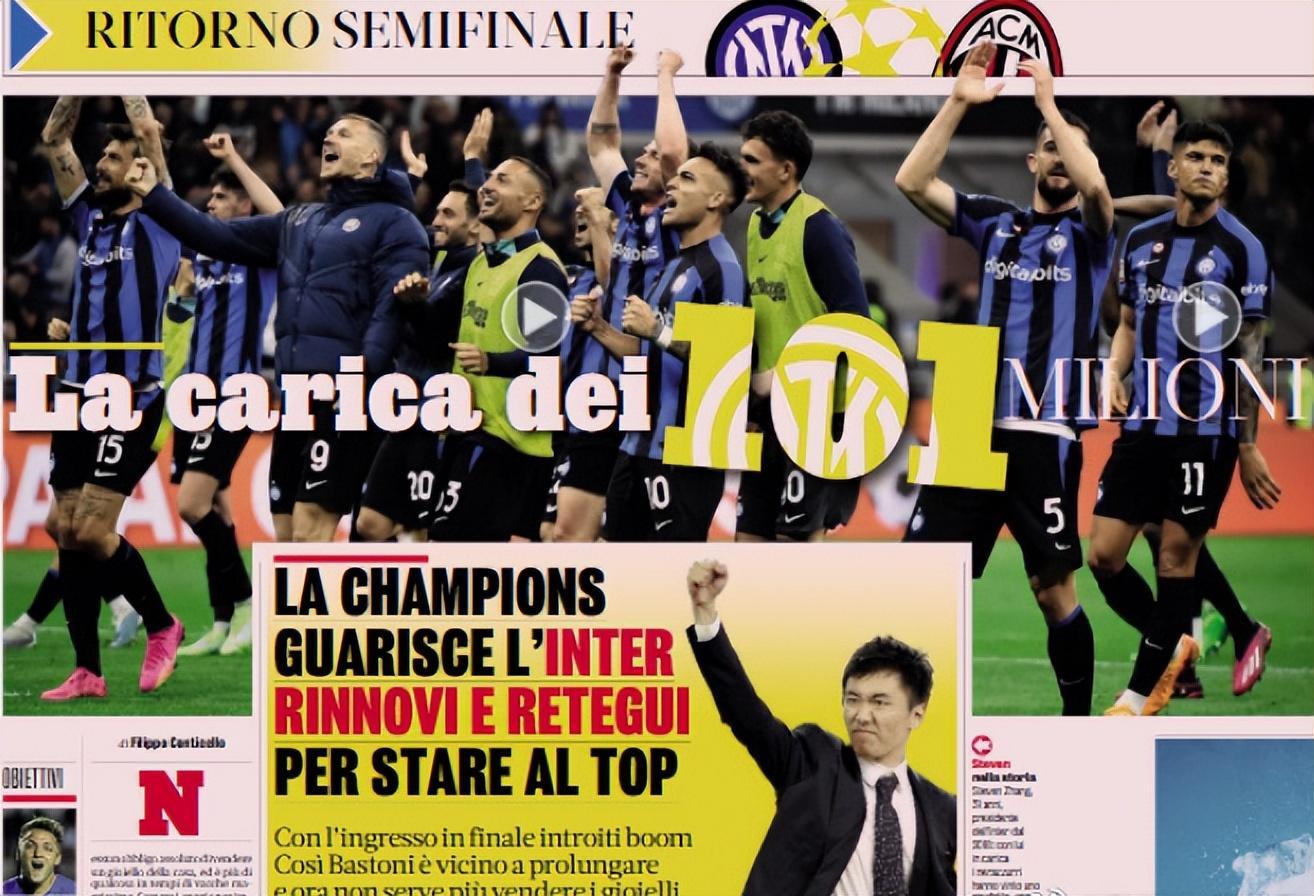 根據意大利媒體的最新消息,國際米蘭若本週闖入歐冠決賽的話,歐足聯各類獎金就達到1.01億歐,再算上主場收益,差不多1.45億歐,折算成人民幣的話,接近11億元,這也基本意味着,“藍黑軍團”今夏不用賣球星了。