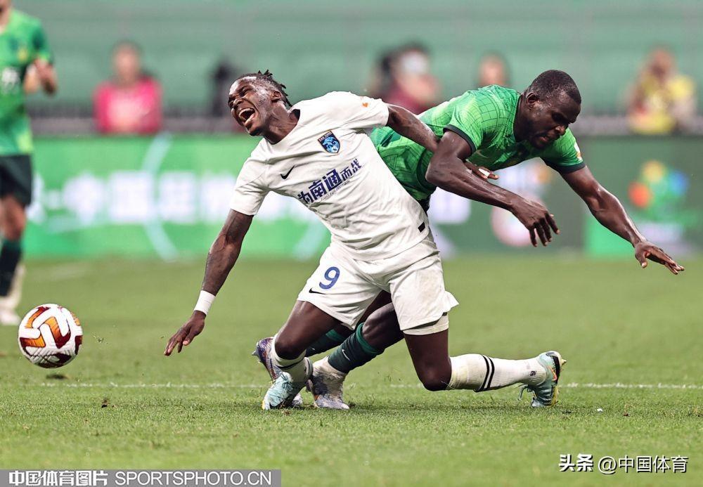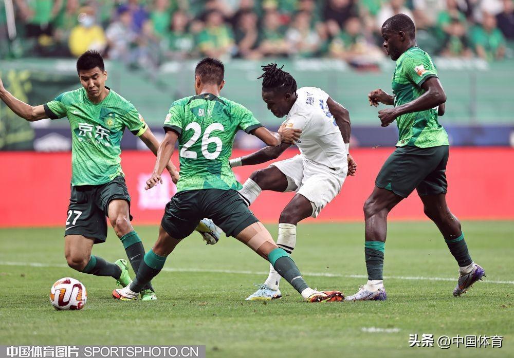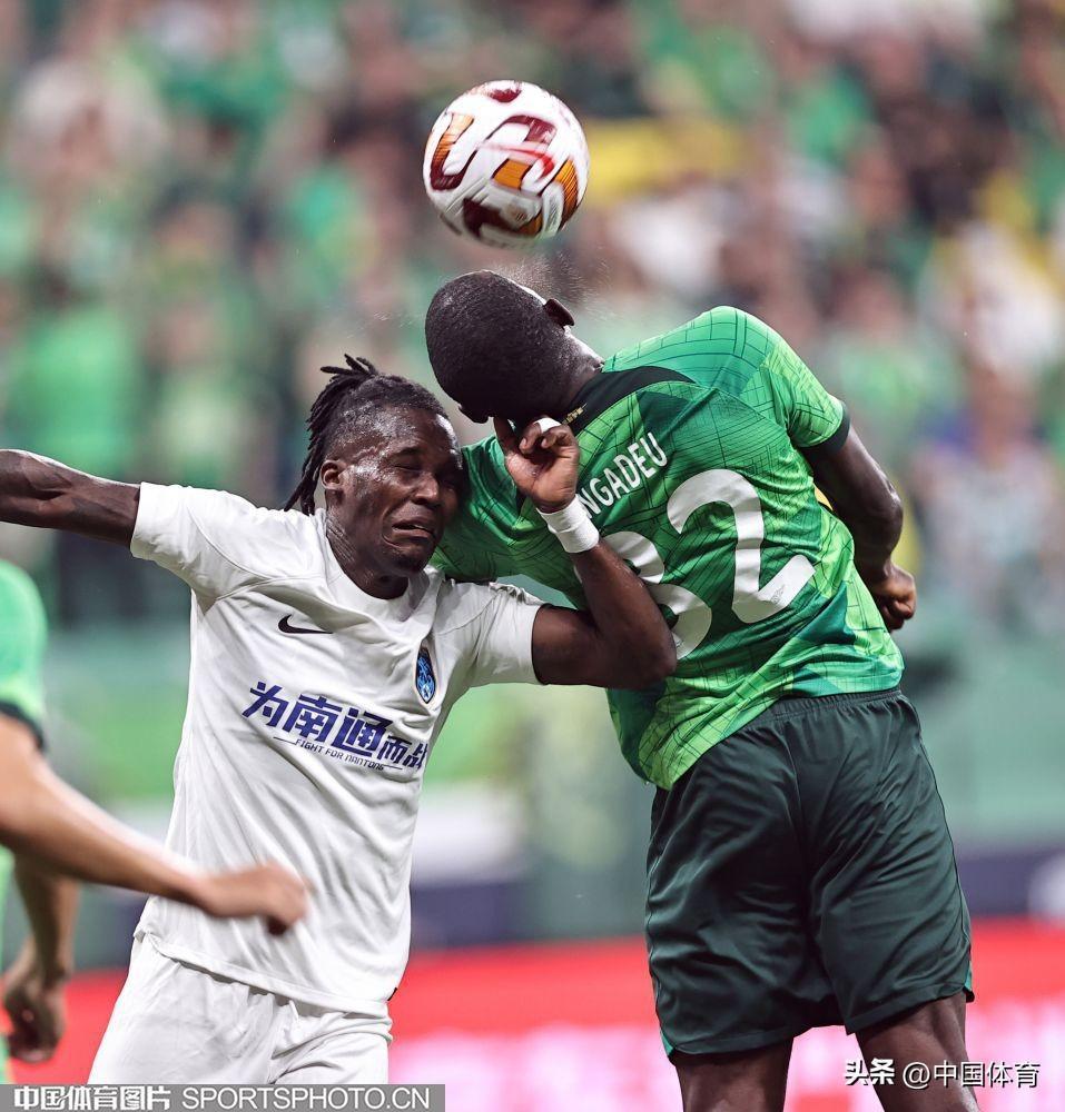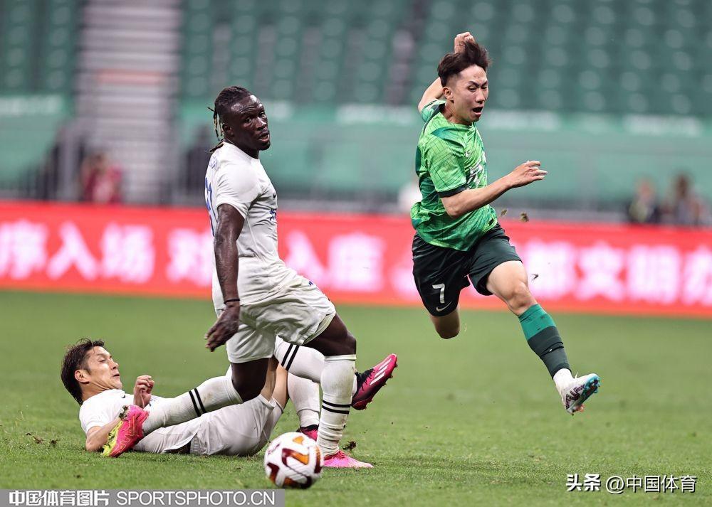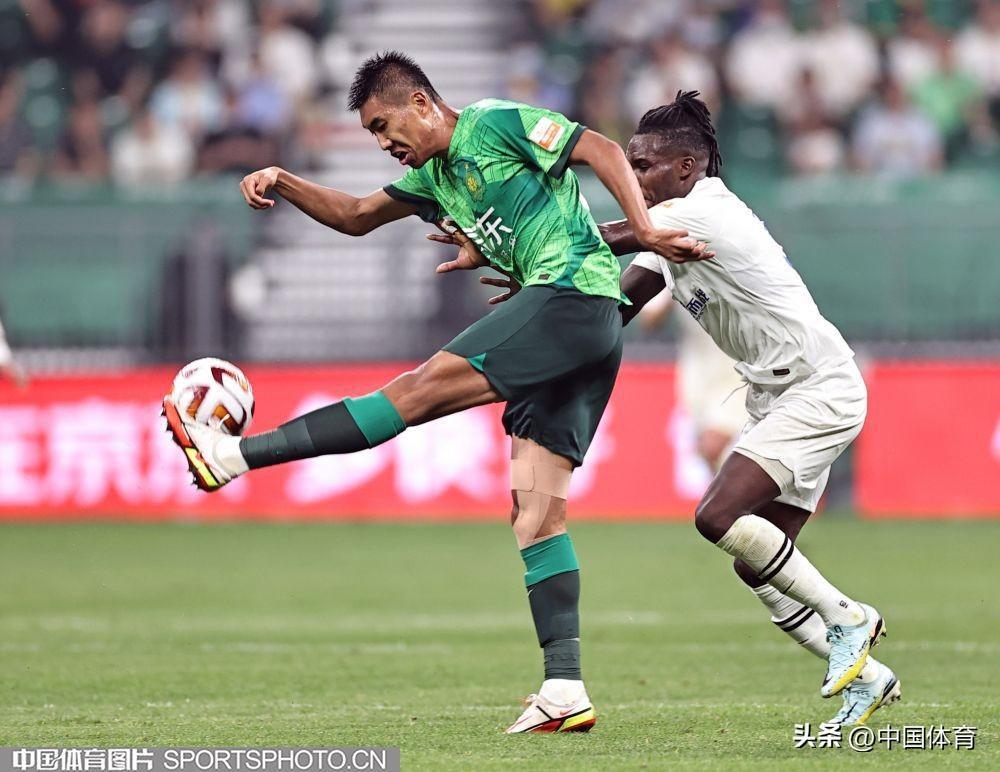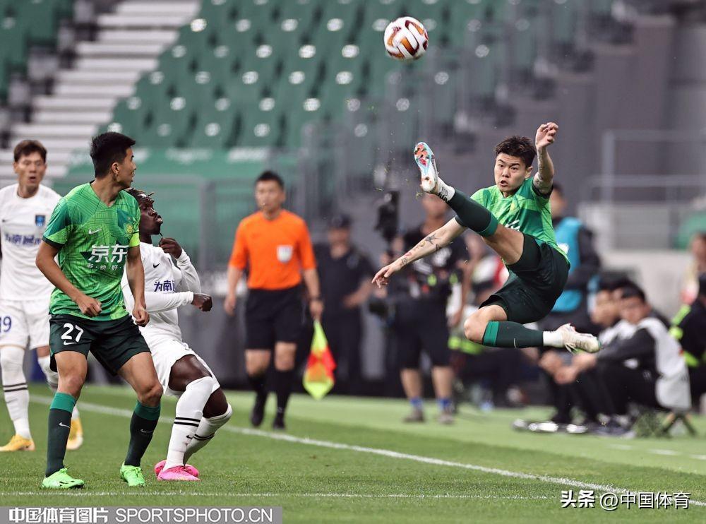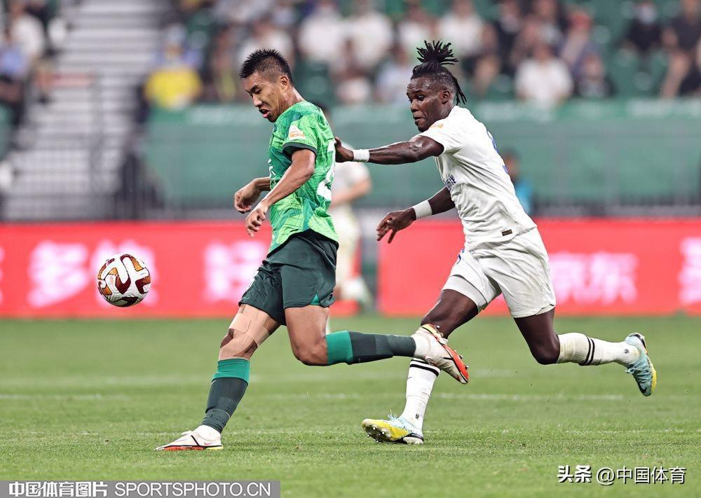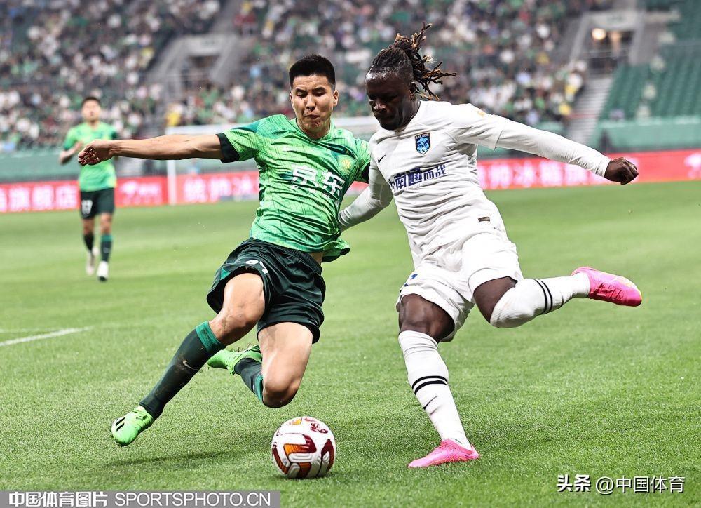 中國體育訊 5月15日晚,在2023賽季中國足球協會超級聯賽第七輪的一場比賽中,北京國安隊憑藉新援阿代米的進球,以1比0戰勝聯賽“升班馬”南通支雲隊,拿到主場首勝。國安隊在此前三個主場比賽中收穫三連平。當晚,3萬餘球迷來到新工體,爲國安隊加油助威,第23分鐘,阿代米禁區內凌空抽射,打入全場唯一一粒進球,助力國安隊獲勝。(中國體育圖片 王憲民 攝)