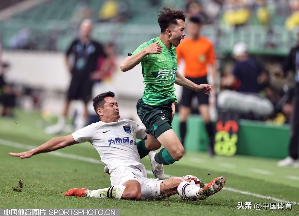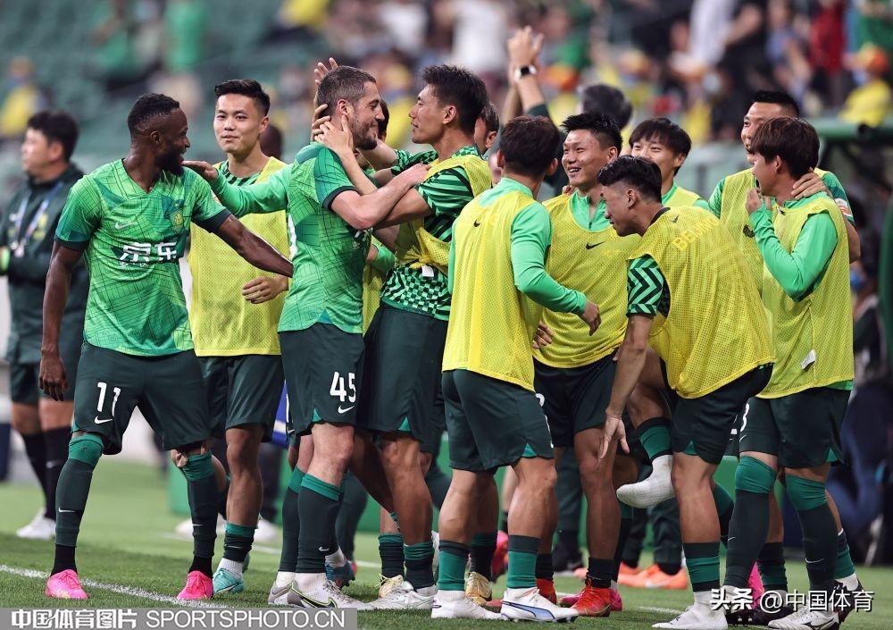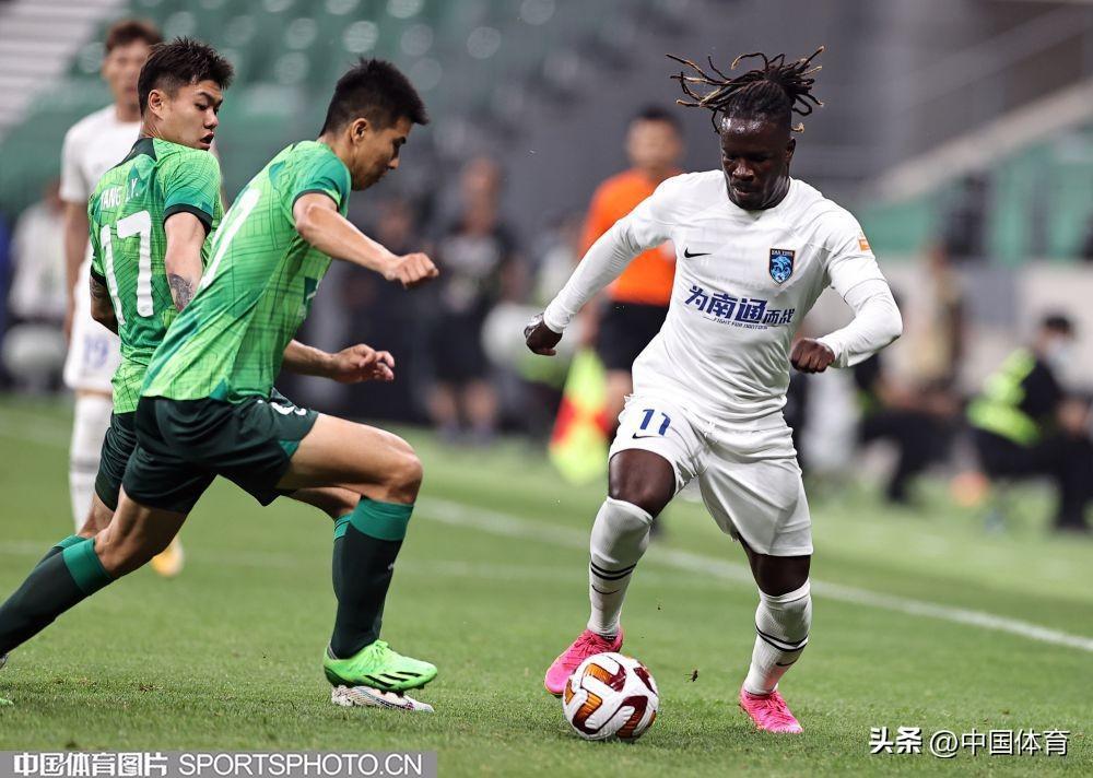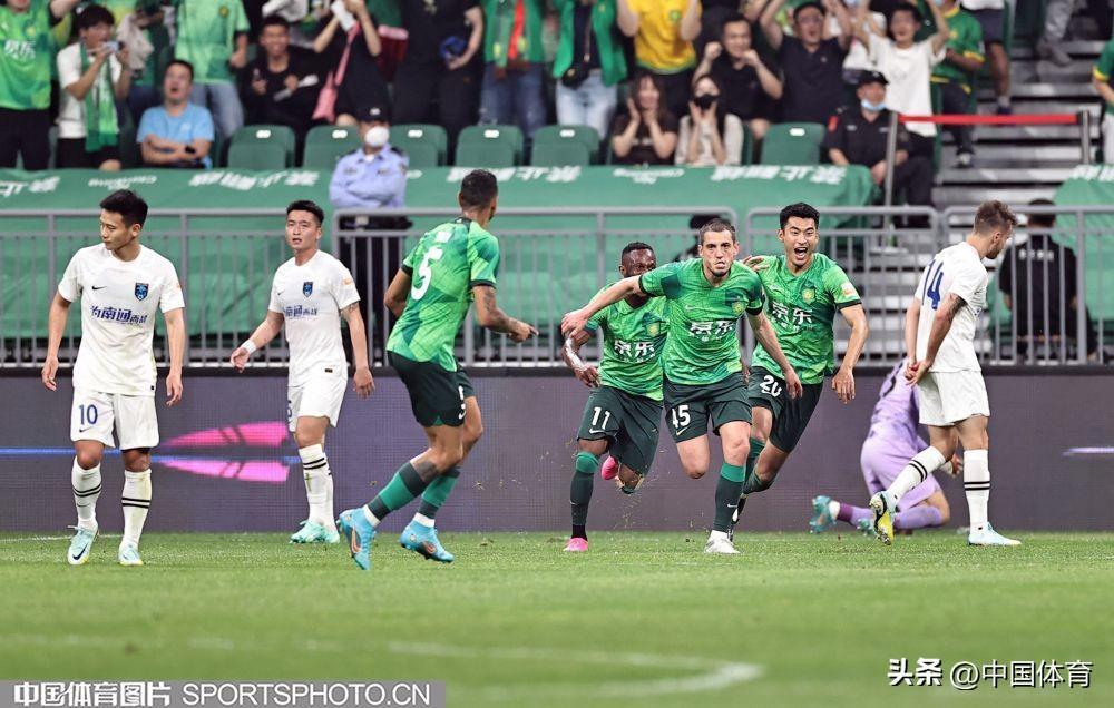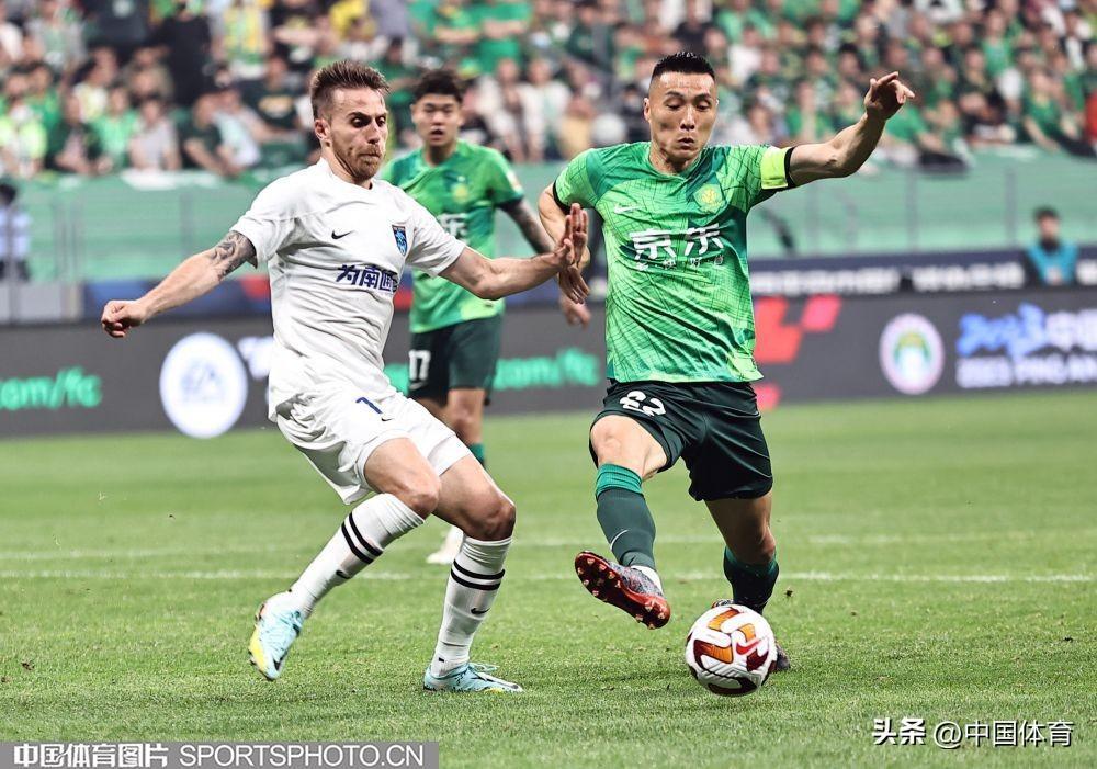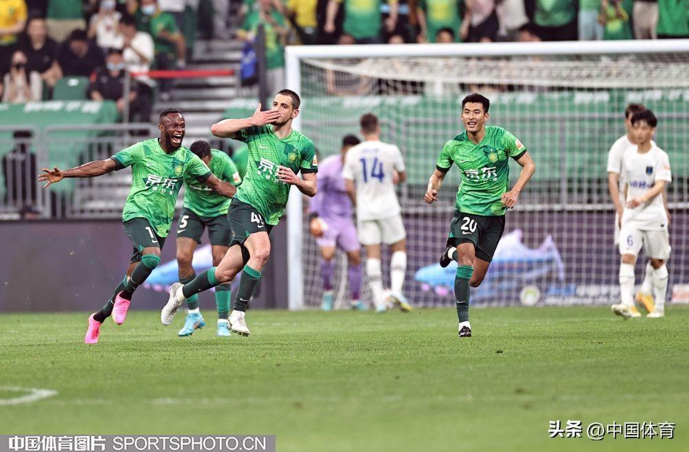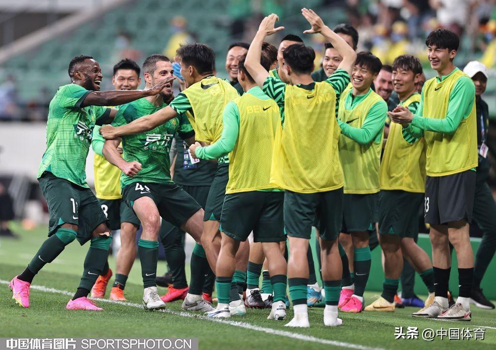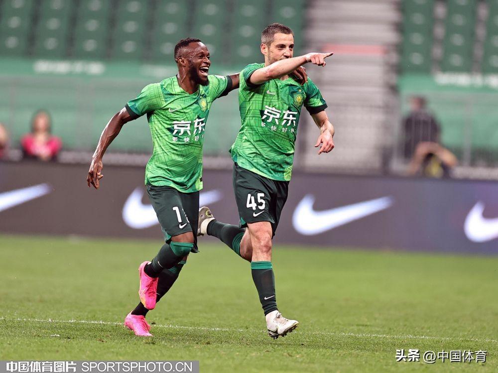中國體育訊 5月15日晚,在2023賽季中國足球協會超級聯賽第七輪的一場比賽中,北京國安隊憑藉新援阿代米的進球,以1比0戰勝聯賽“升班馬”南通支雲隊,拿到主場首勝。國安隊在此前三個主場比賽中收穫三連平。當晚,3萬餘球迷來到新工體,爲國安隊加油助威,第23分鐘,阿代米禁區內凌空抽射,打入全場唯一一粒進球,助力國安隊獲勝。(中國體育圖片 王憲民 攝)