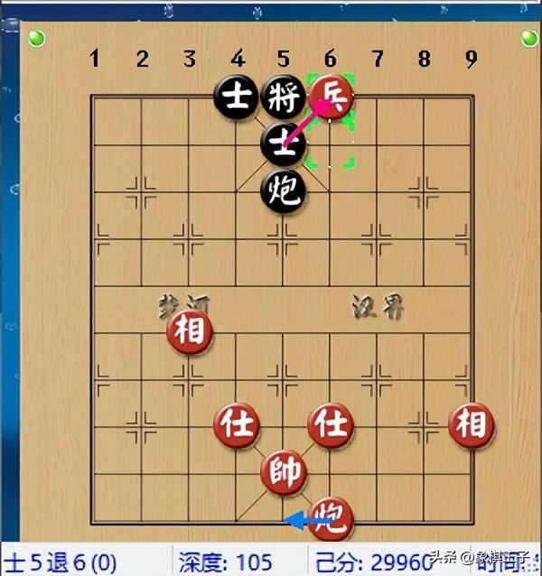 紅方小兵衝入,卡住黑棋九宮,直接一個兵四進一,棄兵叫將,超級入局。
