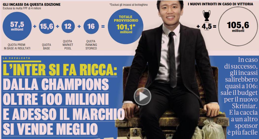 畢竟光是歐冠這一項,如果國米拿到冠軍,將會入賬近1.056億歐元,折算成人民幣的話,高達8億元,即便決賽輸了也差不了多少,國米已經笑收大禮了!