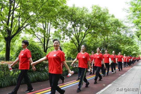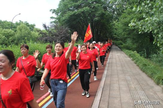 千餘名中老年人浩浩蕩蕩,闊步前行!在富春山居的實景圖中,呈現一道道壯麗多彩的快樂健身好風景。