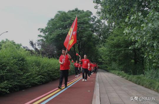 隨着杭州市富陽區政協副主席、區老年人體育協會主席孫曉明的高聲宣佈:“迎亞運 健步走 活動開始 ”!千餘名中老年人在自己隊旗的引領下,順着波光粼粼的春江碧水,沐浴着清晨和煦的陽光,在空氣清新、滿目翠綠中,列兩路縱隊,浩浩蕩蕩,闊步前行在長長的健步道上,他們從風景似畫的太平公園起步,到富春江第一大橋下,共約5公里。大家激情滿懷、意氣風發,不少隊伍揮舞着小國旗或彩色吉祥物,與觀衆們熱情互動,有的在行進中整齊高呼“喜迎亞運,全民健身”的口號,爲自己加油,爲活動添彩!