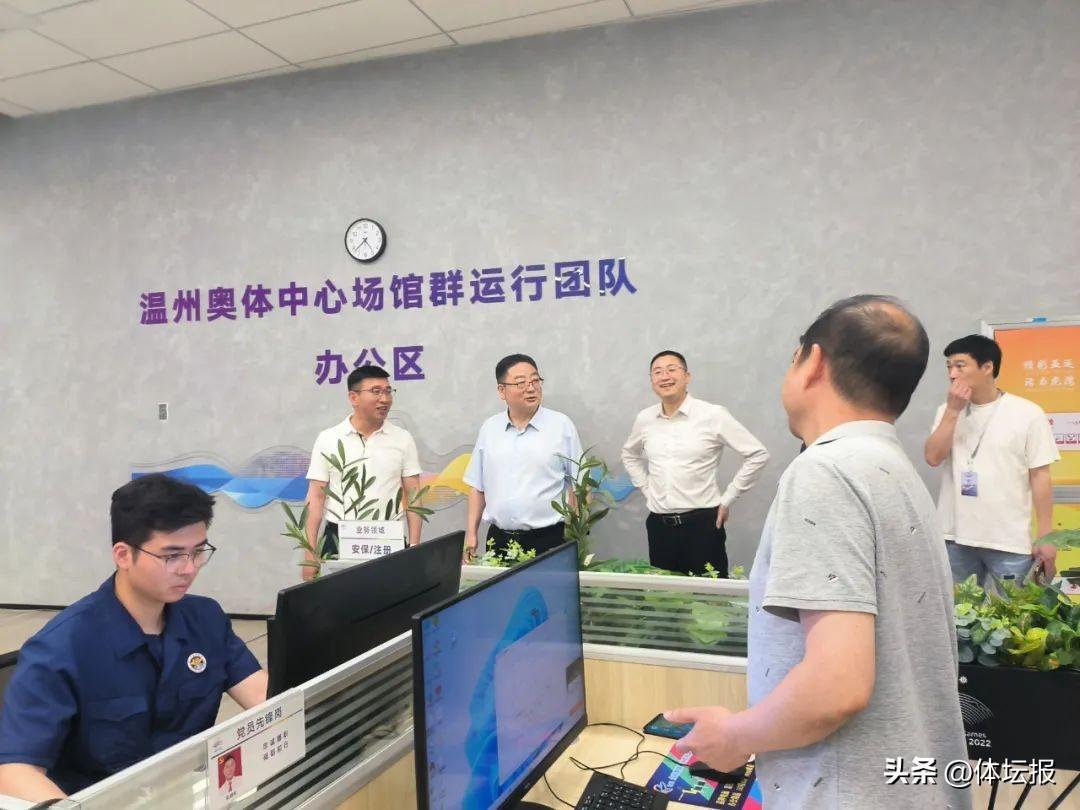 5月17日下午,省體育局副局長張亞東一行赴溫州奧體中心開展調研工作,溫州市體育局二級調研員盧峯、龍灣區委常委李明達、溫州奧體中心場館羣運行團隊祕書長潘忠玉、場館運行/辦公室、競賽技術運行、競賽綜合事務、場館設施運維等領域負責人陪同。