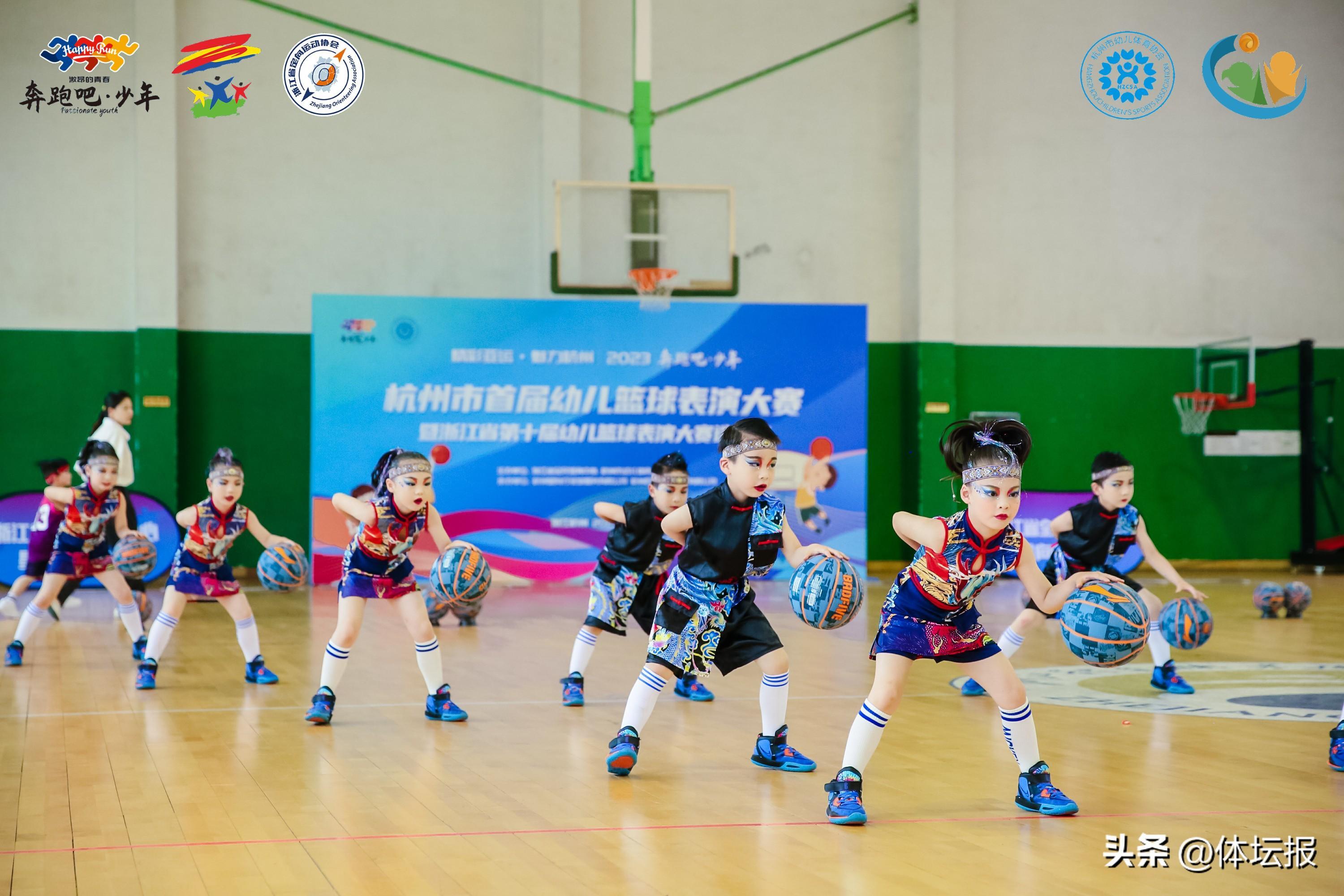 整齊劃一的籃球動作、動感十足的音樂節奏、妝容精緻的可愛萌娃……5月21日,浙江體育職業技術學院(教工路校區)籃球館內,來自杭州市的15家幼兒園單位,250多位小選手齊聚一堂,參與2023年“奔跑吧 少年”杭州市首屆幼兒籃球表演大賽暨浙江省第十屆幼兒籃球表演大賽選拔賽,樂在“球”中。