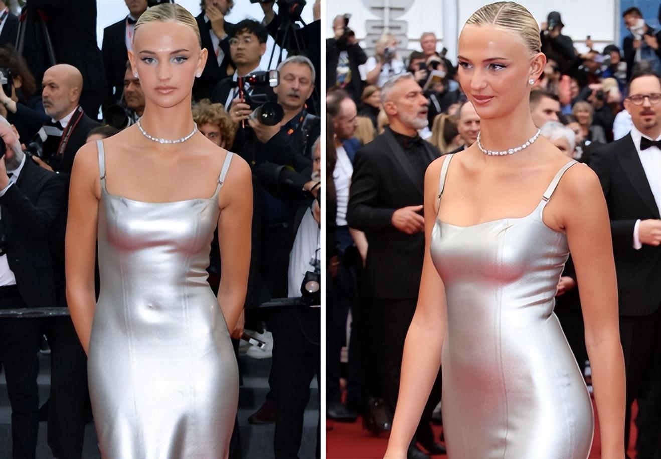 只見,20歲出頭的米婭高貴典雅,穿着一襲銀色的吊帶長裙,婀娜的身姿顯露無疑,雖然米婭不是那種風韻猶存,前凸後翹的歐美範兒女星,但她的獨特氣質還是讓人印象深刻。
