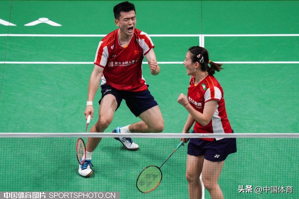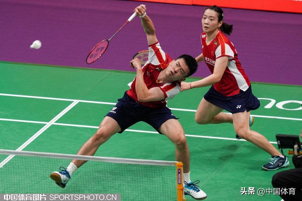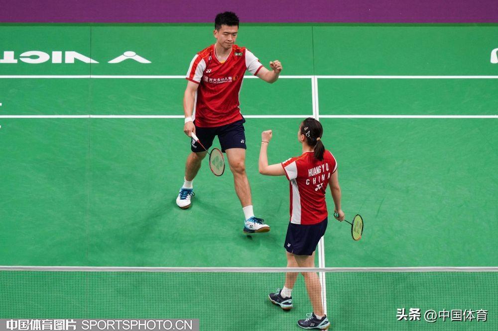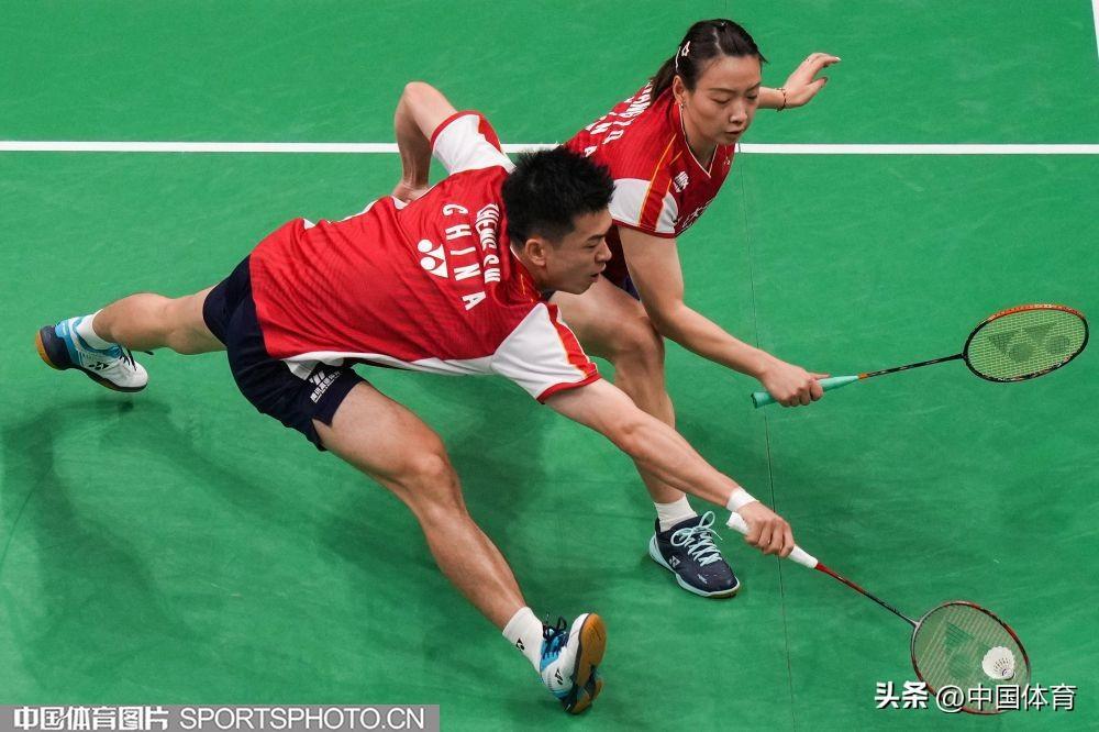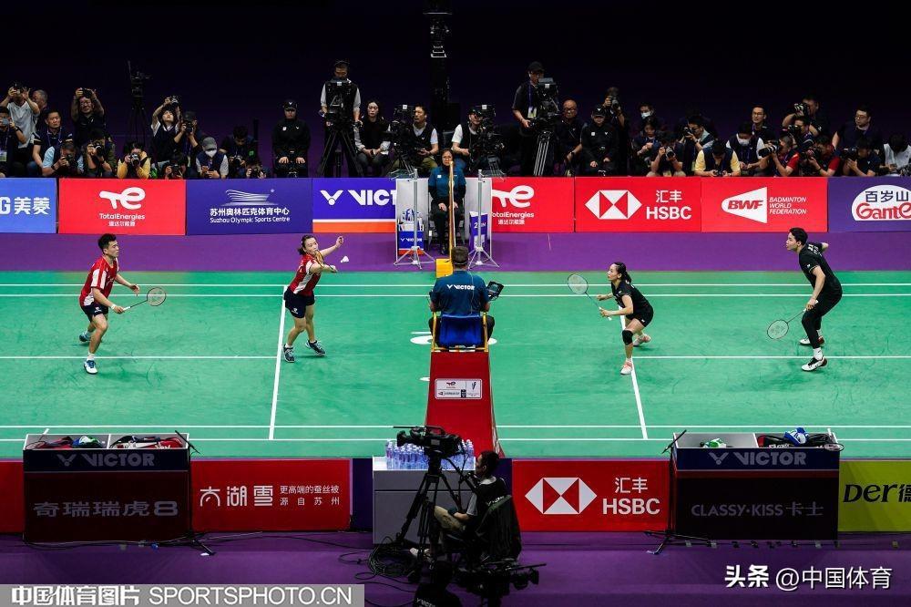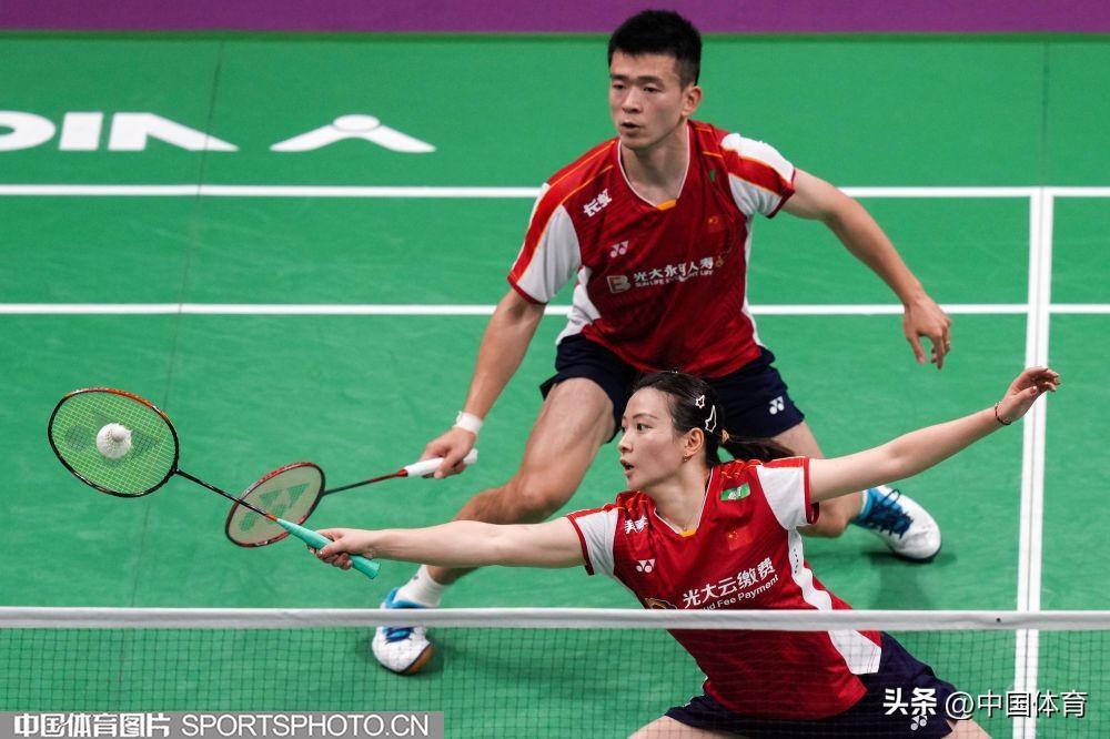 中國組合鄭思維/黃雅瓊(左)在混雙比賽中對陣韓國組合徐承宰/蔡侑玎