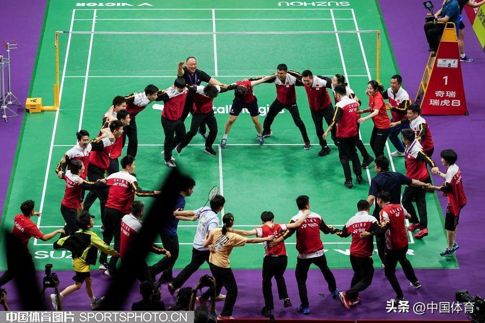 中國體育訊 5月21日,第18屆蘇迪曼杯世界羽毛球混合團體錦標賽在蘇州奧林匹克體育中心展開決賽較量。中國隊以3比0戰勝韓國隊豪取三連冠。混雙組合鄭思維/黃雅瓊2比1逆轉韓國組合徐承宰/蔡侑玎,爲中國隊先下一城;男單對決,石宇奇2比0戰勝李宥奎,爲中國隊擴大戰果;隨後女單名將陳雨霏2比0力克安洗瑩,終結比賽。此役過後,中國羽毛球隊新增五位世界冠軍,分別是梁偉鏗 、王昶 、李詩灃、歐烜屹 、張殊賢。(中國體育圖片 倪敏哲 攝)