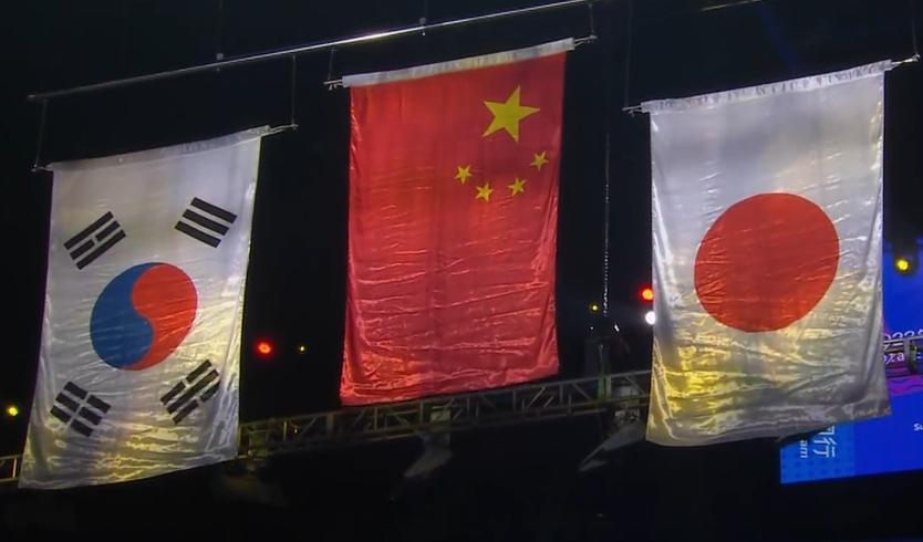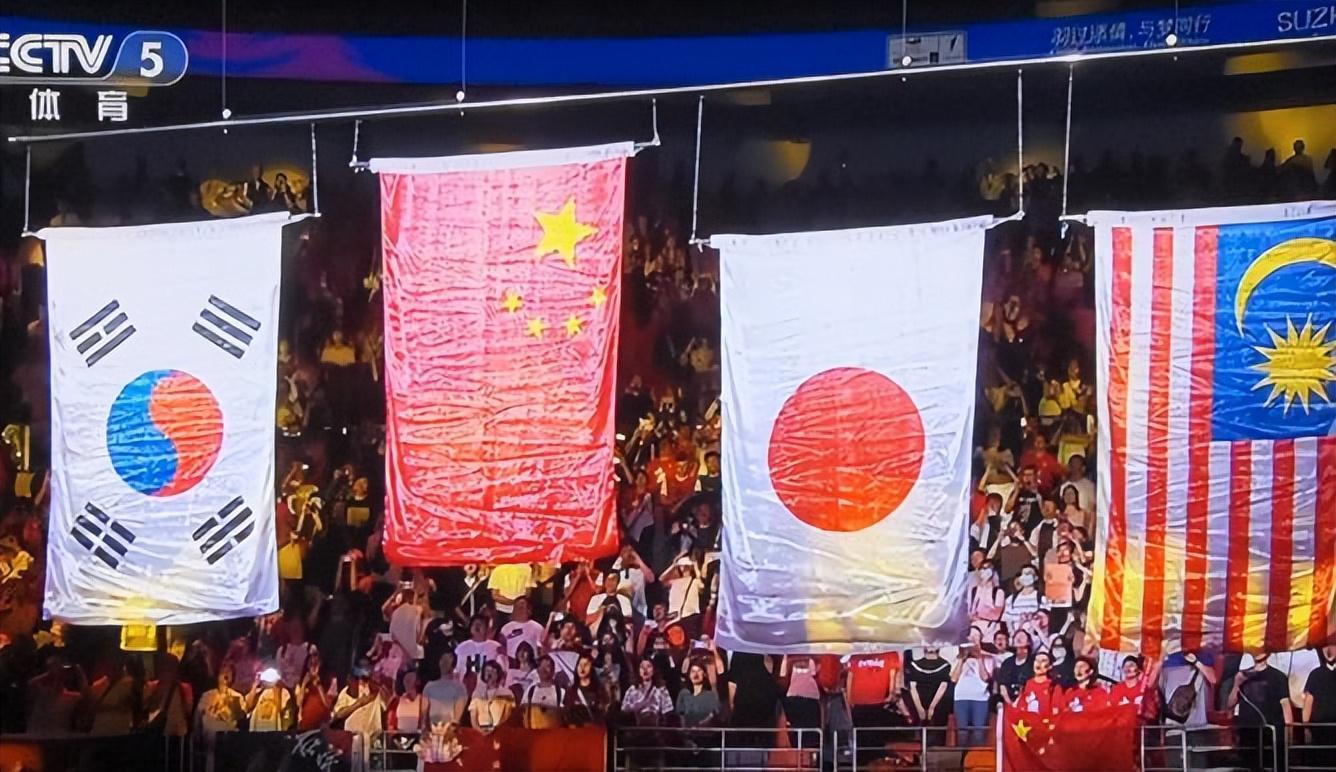 幸好,中國隊自己帶來了一面鮮豔的五星紅旗,佔據了C位,直播鏡頭也是長久對準國羽將士們手裏的這面嶄新國旗,避免尷尬畫面再度出現。