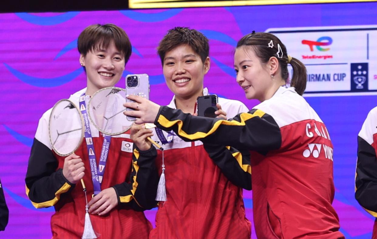 2023年蘇迪曼杯決賽,中國隊兵不血刃,3-0橫掃老對手韓國,霸氣實現3連冠,隊史第13次登頂,賽後的頒獎儀式上,中國羽毛球隊的15位隊員和總教練張軍齊刷刷地站上最高領獎臺,場面壯觀,值得一提的是,一面鮮豔的五星紅旗也被帶上領獎臺,莊重又威嚴,滿滿的自豪感!