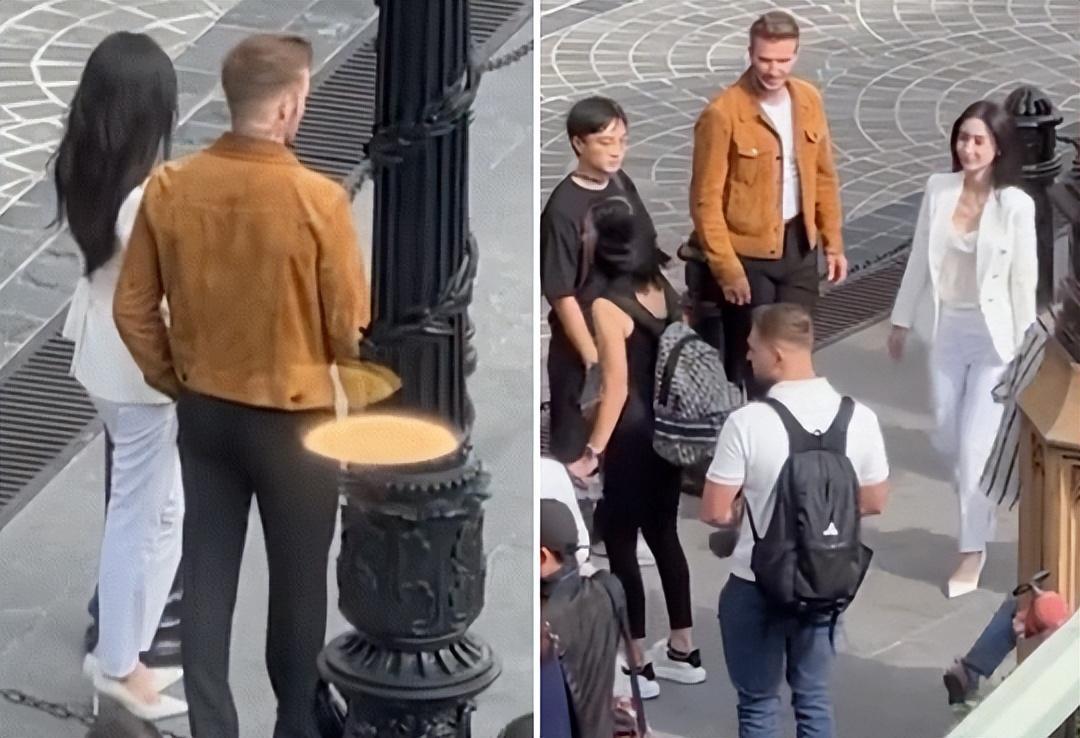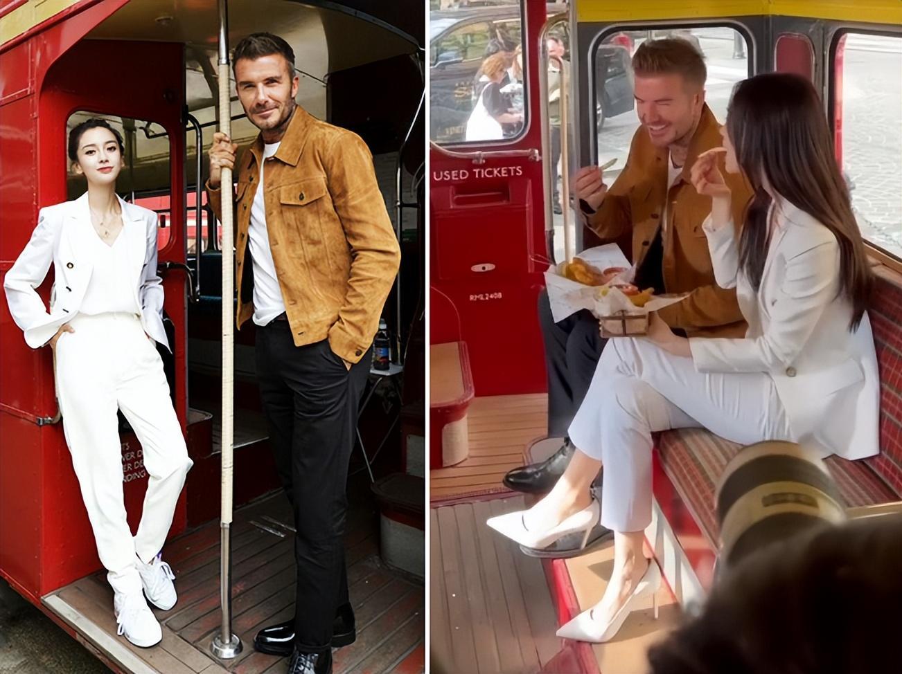 只見,貝克漢姆穿着一件黃色的英倫風夾克,而楊穎則身穿一套白色小西裝,兩人顏值在線,CP感十足,有種優雅大叔與鄰家女孩的既視感,他們還乘坐巴士來到城市街頭,拍攝一些街景照片。一帥一美,完美搭配,東西方審美的結合,畫面確實很養眼了。