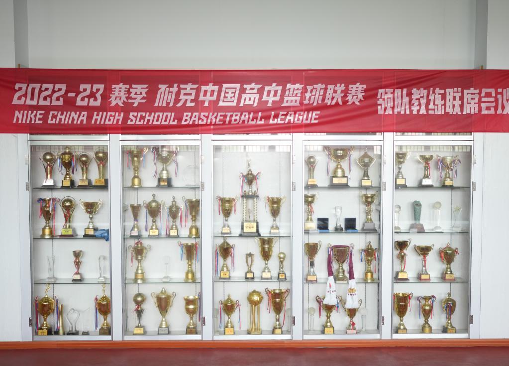 這是回浦中學籃球館展示的獎盃(5月18日攝)。新華社記者翁忻暘攝