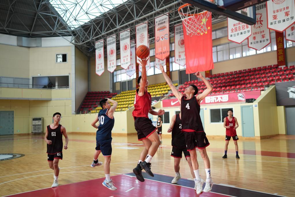 5月18日,高一學生在回浦中學籃球館訓練。新華社記者翁忻暘攝