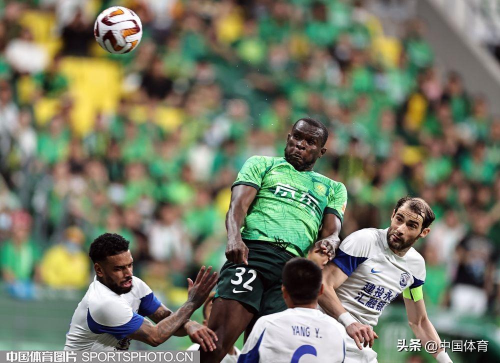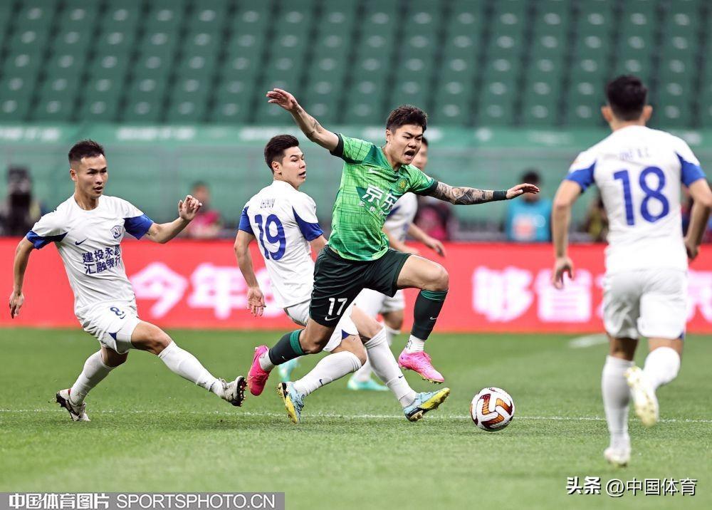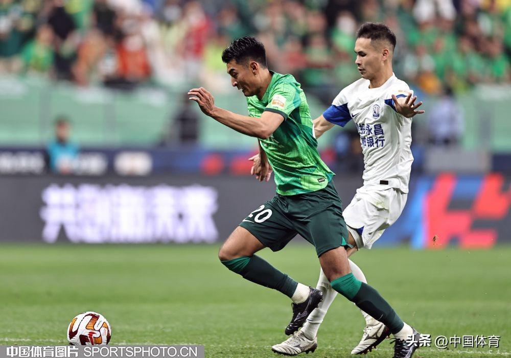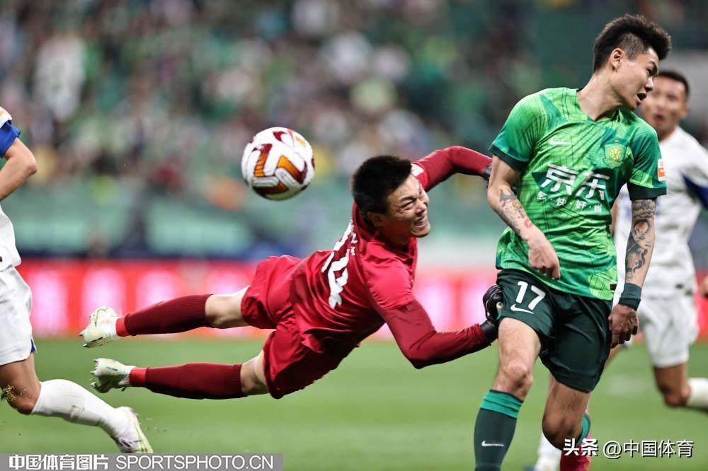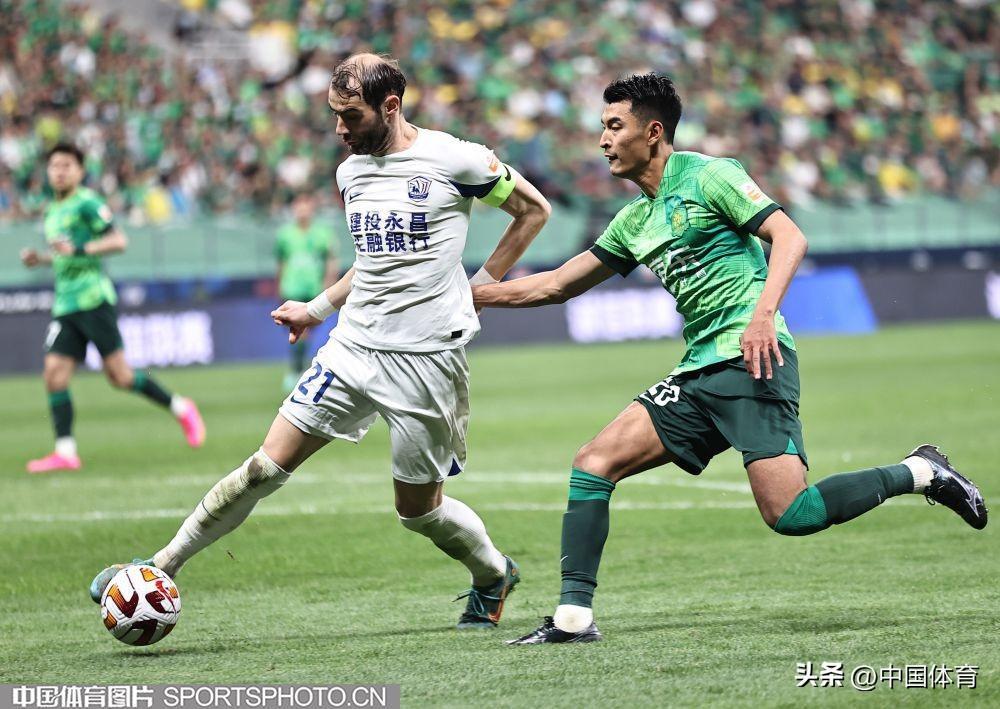 中國體育訊 5月23日晚,2023賽季中超聯賽第9輪開戰,北京國安主場迎戰滄州雄獅隊。上半場奧斯卡門前推射破門,滄州雄獅取得領先,隨後張稀哲變線破門爲北京國安扳平比分,9分鐘後朱可夫助力滄州雄獅再度將比分超出,隨後北京國安王子銘、姜祥佑相繼破門,上半場結束北京國安以3比2領先。易邊再戰,王子銘頭球建功,高天意、楊立瑜錦上添花,最終北京國安以6比2大勝滄州雄獅隊。(中國體育圖片 王憲民 攝)